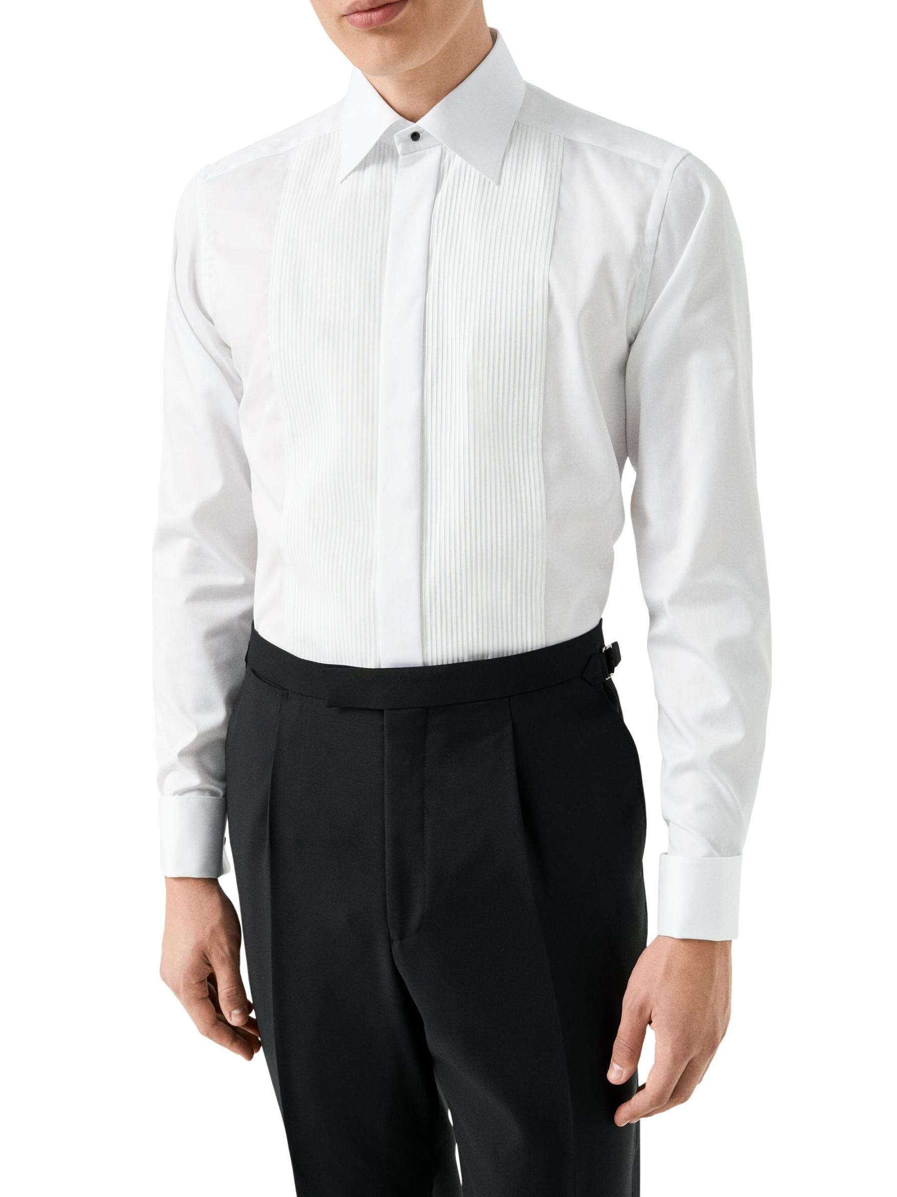 يتميز قميص Eton المصنوع من قماش عالي الأداء ومقاوم للتجاعيد بسهام في الخلف لعرض قابل للتخصيص وأساور أسطوانية متعددة الاستخدامات قابلة للتحويل يمكن تحويلها إلى سوار فرنسي. يضمن الطوق المدبب ذو الياقة الدائمة والقطن ذو التيلة الطويلة جدًا الراحة والأناقة.
