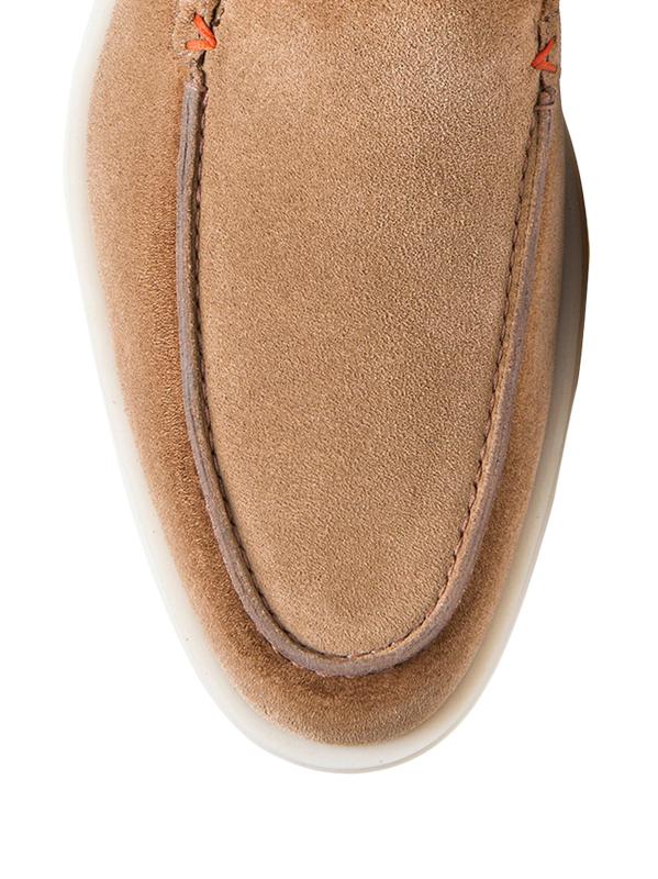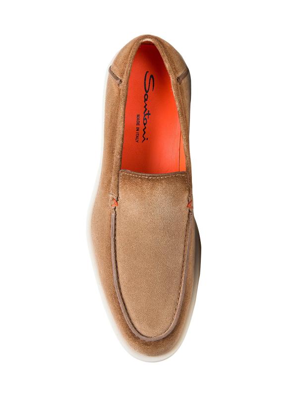 صُنعت أحذية Santoni من الجلد المدبوغ الناعم مع إصبع قدم على شكل لوز.