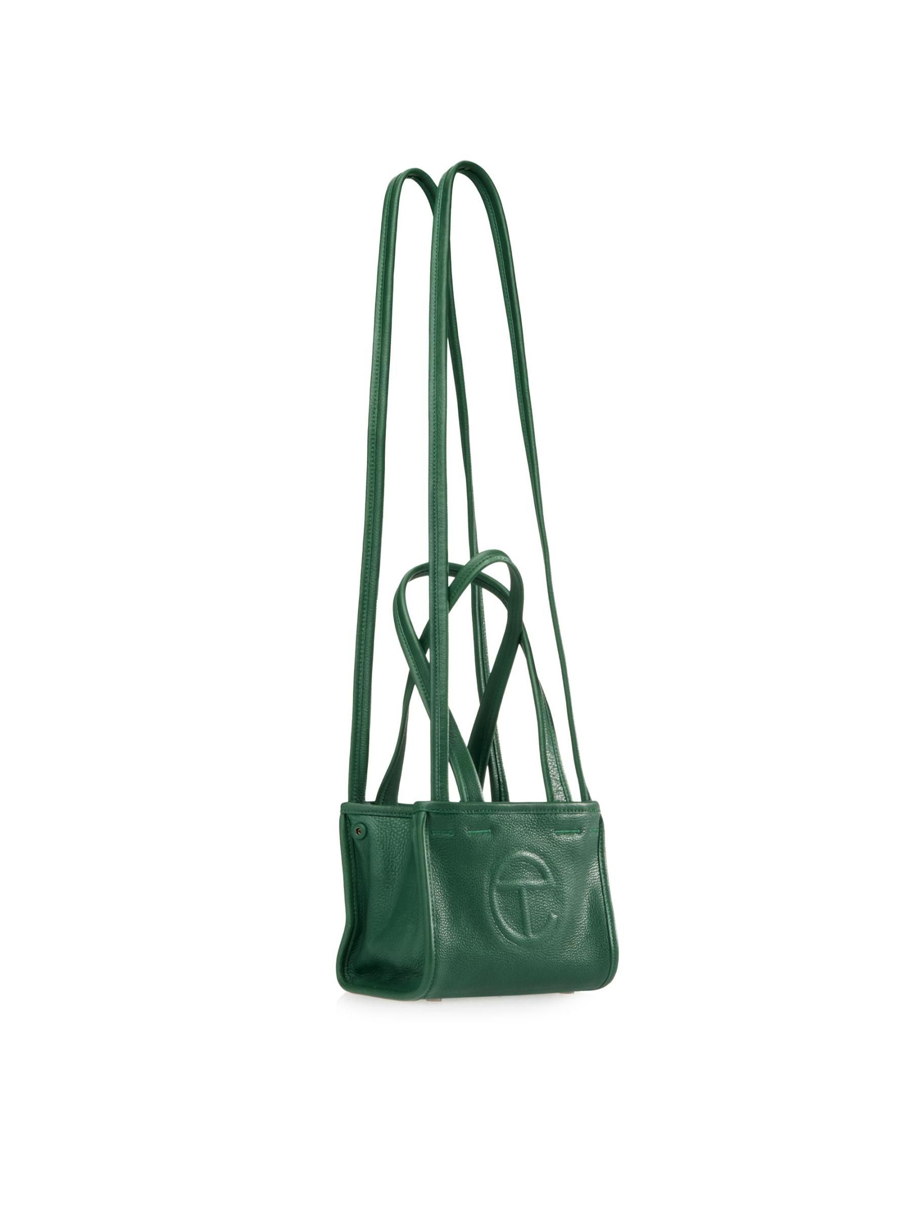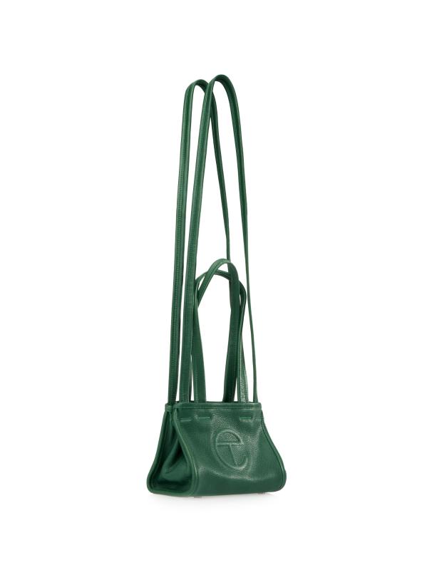 تتميز حقيبة الحمل الصغيرة من TELFAR المصنوعة من الجلد بتصميم أنيق مع خيارات حمل مزدوجة.