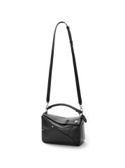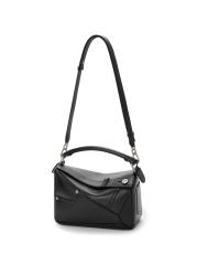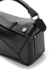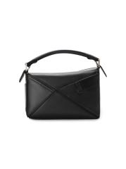 تتميز حقيبة Panta Puzzle الصغيرة ذات المقبض العلوي من LOEWE المصنوعة من الجلد المرن بألواح هندسية يمكن التعرف عليها على الفور والتي تسمح للصورة الظلية بالانهيار والطي بشكل مسطح. يوفر هذا التصميم متعدد الاستخدامات خيارات حمل متعددة وتم تشطيبه بتفاصيل مستوحاة من البنطال.