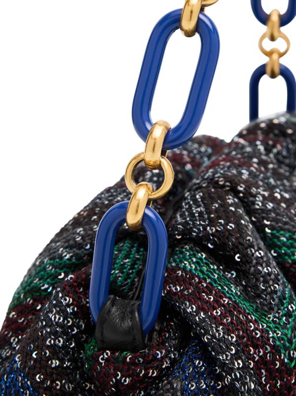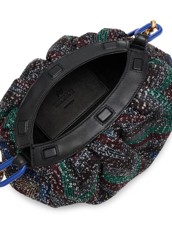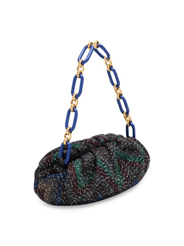 حقيبة الكتف الصغيرة هذه من Missoni، المصنوعة من القطن والجلد، تتميز بتصميم شيفرون مطرز مع حزام كتف على شكل سلسلة.