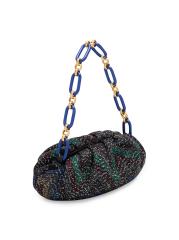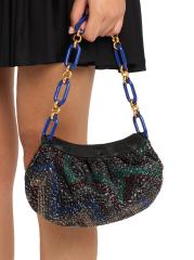 حقيبة كتف صغيرة من قطن شيفرون مزيّنة بالترتر