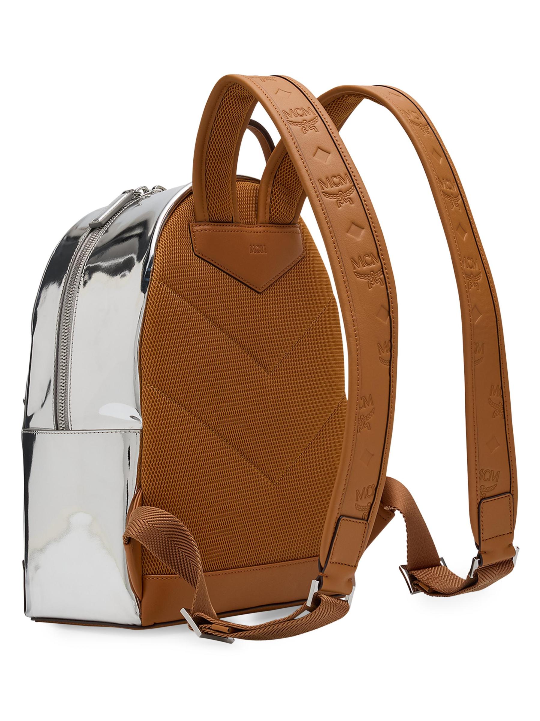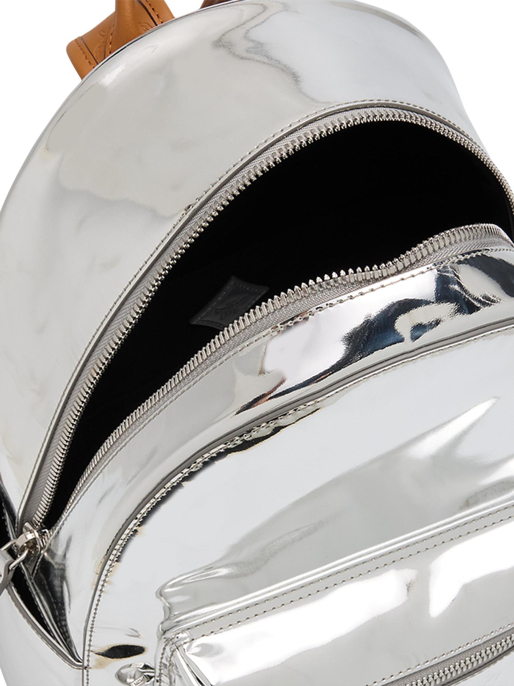 حقيبة ظهر Stark من MCM مصنوعة من الجلد المعدني اللامع ومزينة بزخرفة جلدية Visetos المنقوشة.