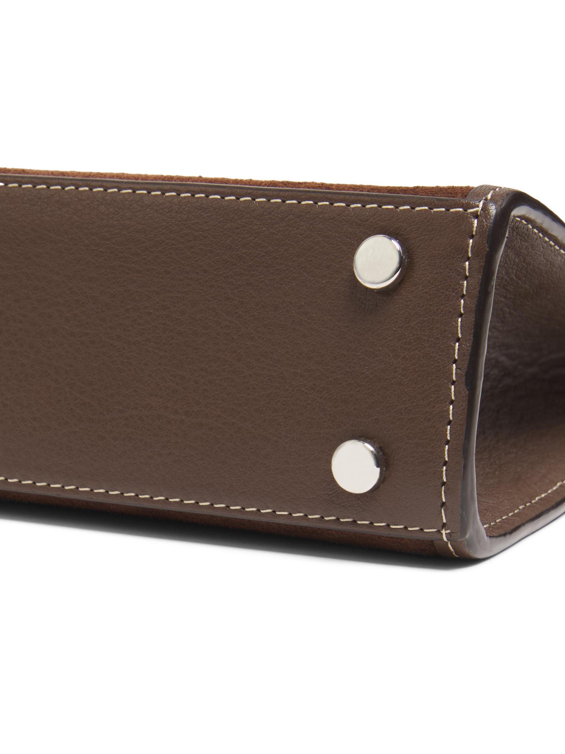 حقيبة صغيرة من الجلد المدبوغ بمقبض علوي