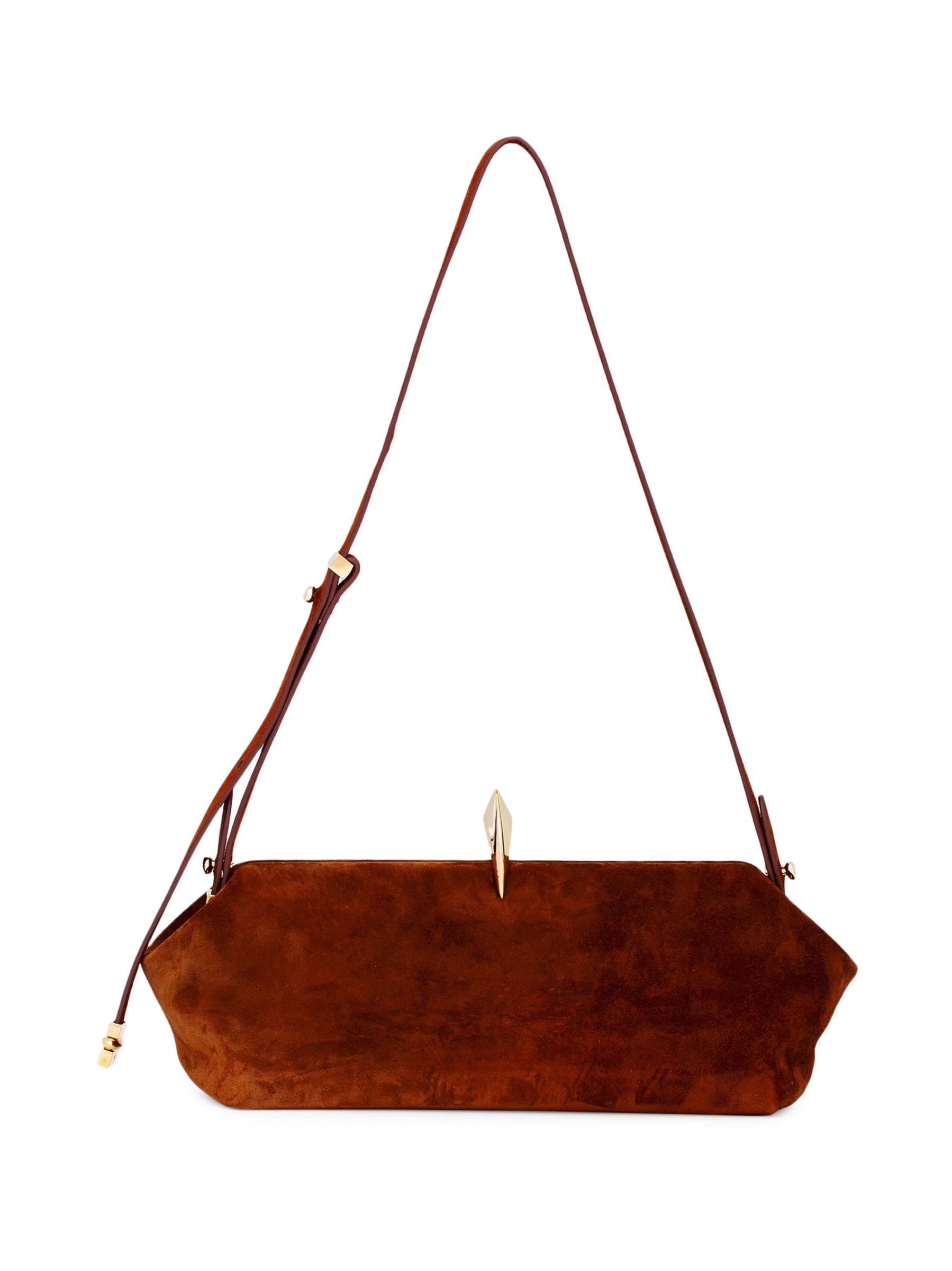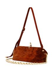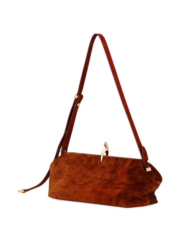 حقيبة الكتف Sofia La Petite من Benedetta Bruzziches مصنوعة من الجلد المدبوغ ومزينة بحزام ذهبي اللون على شكل سلسلة.حزام يلتف حول الجسم قابل للتعديل إغلاق بمشبك جيبان مفتوحان يشمل غطاء الغبار جلد العجل صُنع في إيطاليا