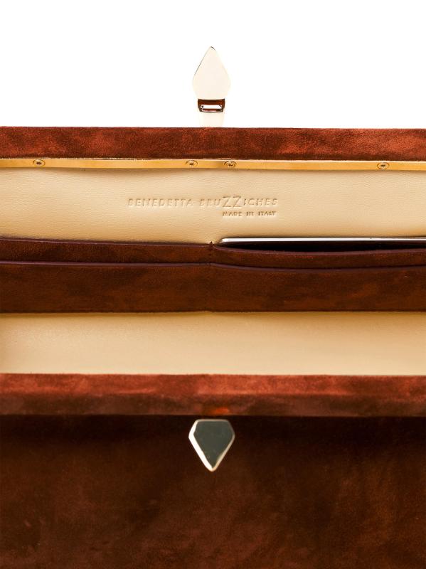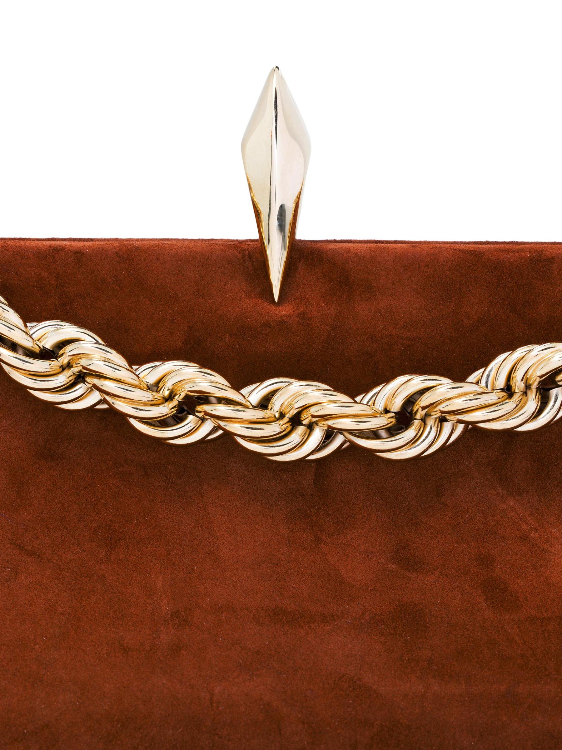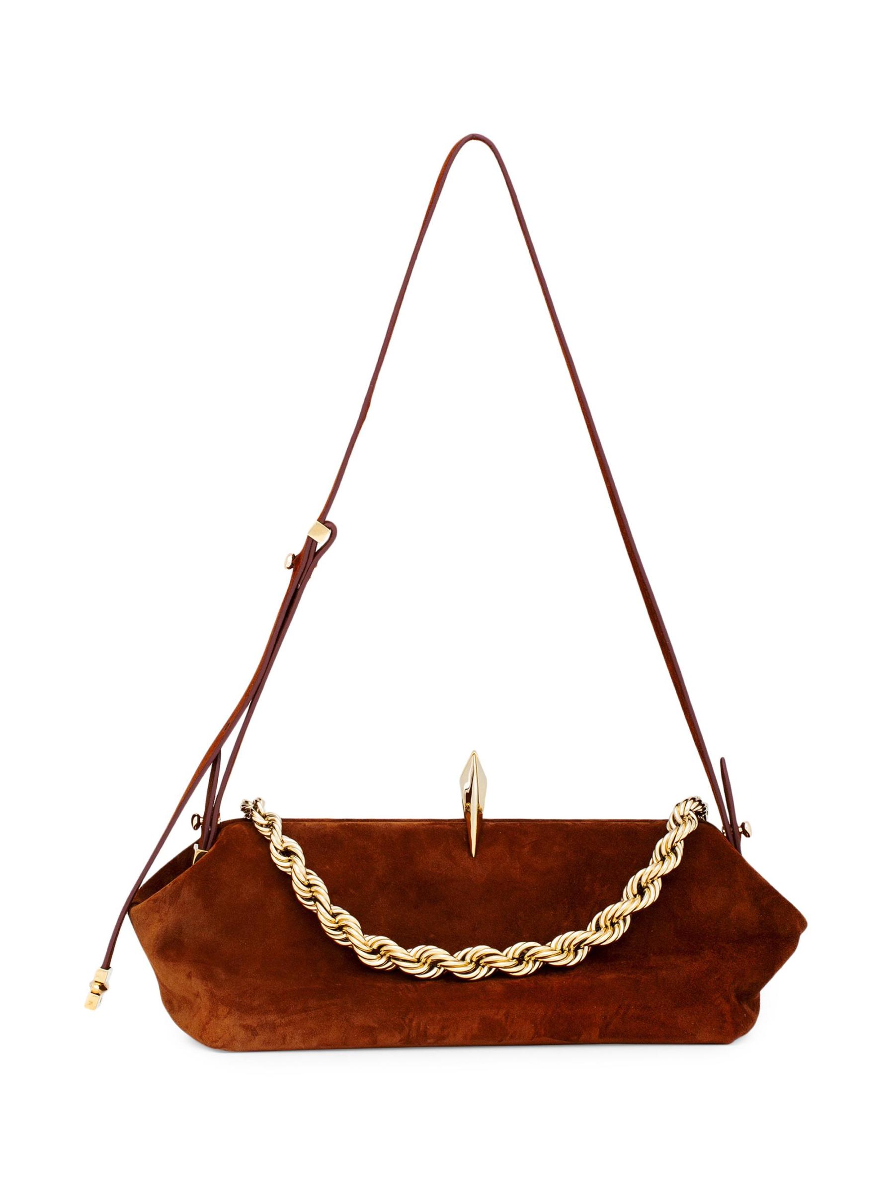 حقيبة الكتف Sofia La Petite من Benedetta Bruzziches مصنوعة من الجلد المدبوغ ومزينة بحزام ذهبي اللون على شكل سلسلة.