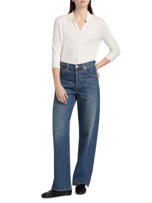 تم تصميم قميص سوفت تاتش هذا من Majestic Filatures، المصنوع من قماش قابل للتمدد، بقصة شبه مريحة. يُكمل المظهر ياقة واسعة وأكمام بطول ثلاثة أرباع وفتحة بأزرار أمامية.طوق سبريد أكمام بطول ثلاثة أرباع إغلاق بأزرار أمامية 96% فيسكوز/ 4% إليستين يُغسل في الغسالة مستوردة