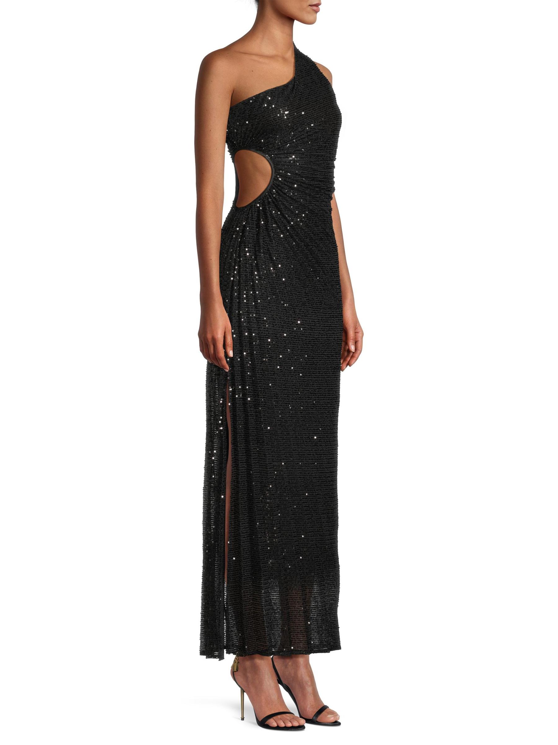 تم تصميم فستان Solie من Delfi المُزين بالترتر اللامع مع صورة ماكسي غير متماثلة وفتحة عند الورك.خط رقبة غير متماثل حزام للكتف خصر مقصوص شق جانبي تسحب 98% بوليستر/ 2% سباندكس البطانة: 90% بوليستر/ 10% سباندكس تنظيف جاف صُنع في الولايات المتحدة الأمريكية