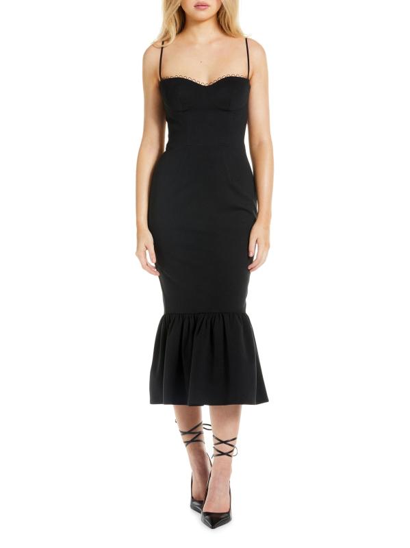 يتميز فستان Soraya من Katie May بأكواب صدرية مطرزة وتقليم حلقي رقيق وحاشية بيبلوم مبالغ فيها.