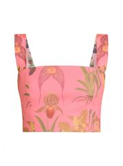 صُنعت بلوزة سوتافينتو القصيرة من No Pise La Grama من مزيج الكتان والقطن بطبعة نباتية.رقبة مربعة أحزمة كتف إغلاق بسحّاب خلفي 80% كتان/ 20% قطن تنظيف جاف مستوردة
