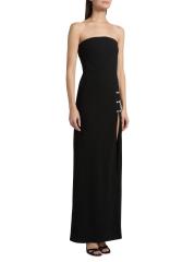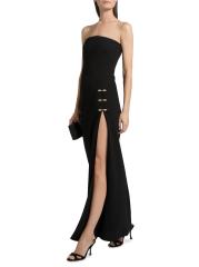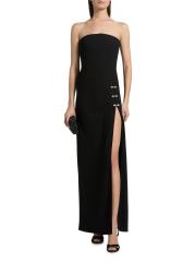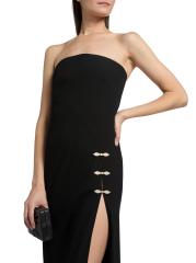 يتميّز فستان سوزا ماكسي من سالوني بتصميم ضيّق مع تقويرة بدون حمالات وتطريزات مرصّعة بالكريستال على الجانب.
