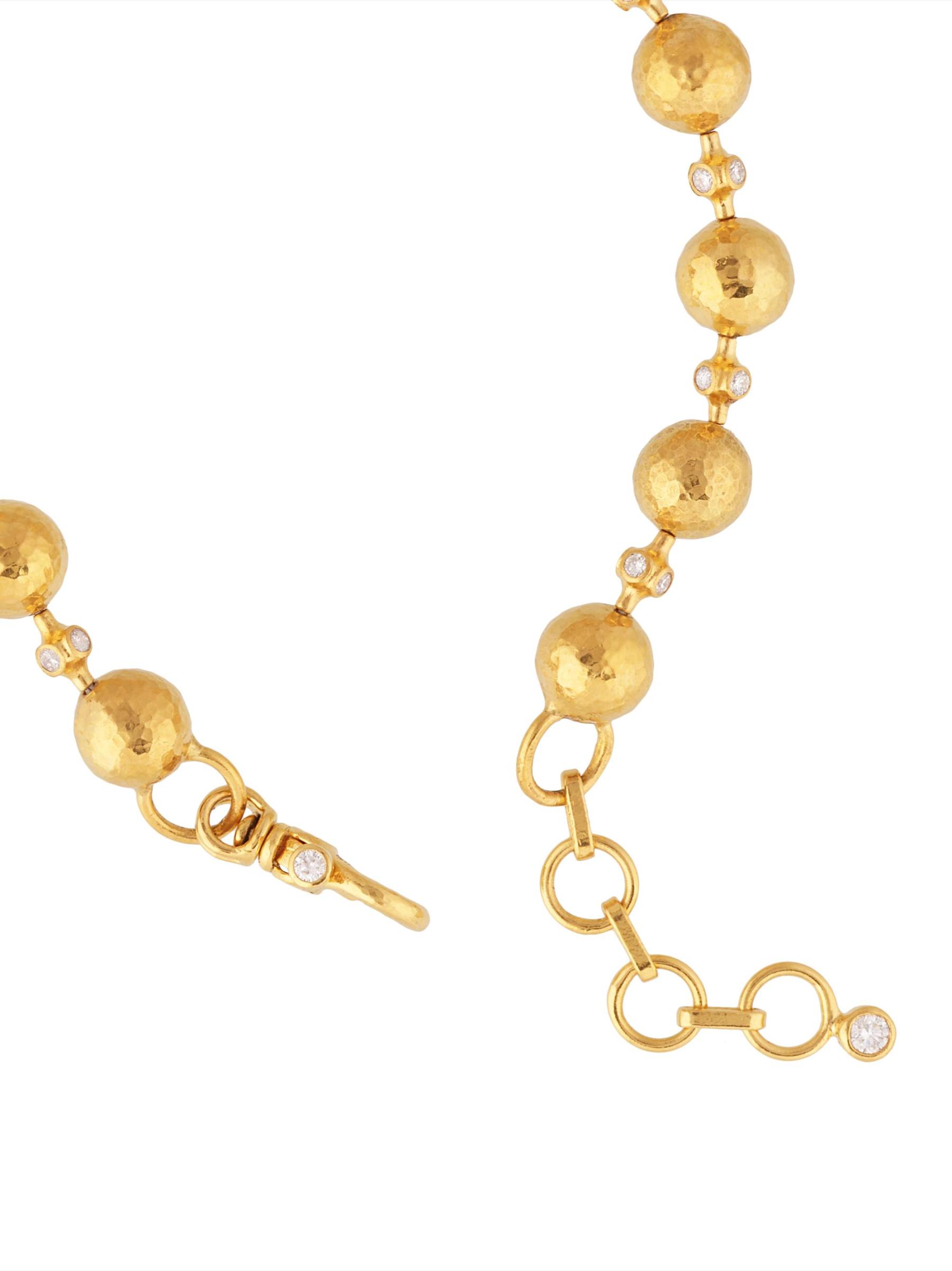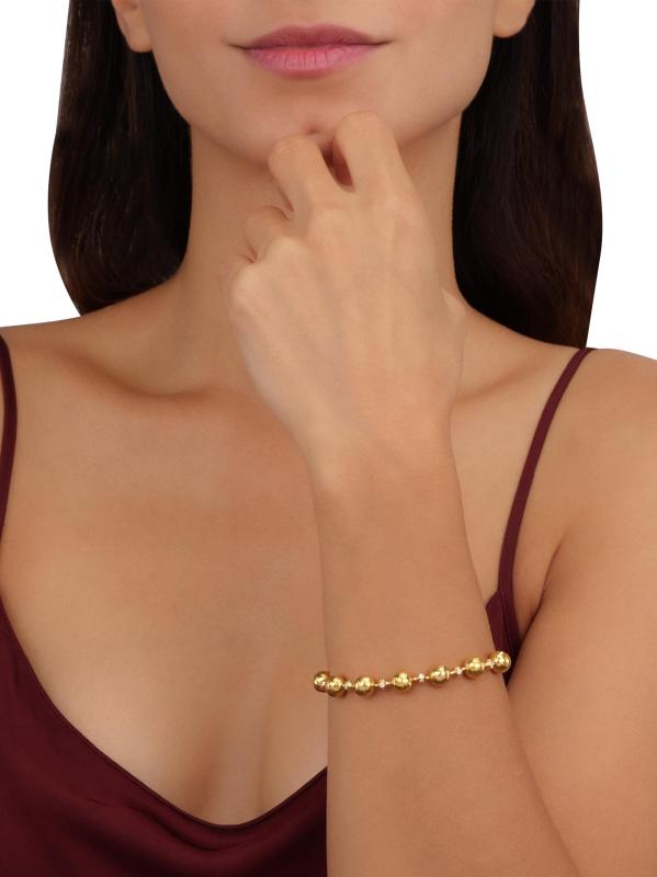 من مجموعة Spell. صُنع هذا السوار ذو السلسلة الكروية من Gurhan، المُزين بأحجار الماس الصغيرة المستديرة، من الذهب الأصفر عيار 24 قيراط و22 قيراطًا. تكتمل هذه القطعة المذهلة بالتشطيب اليدوي المميز للمصمم.