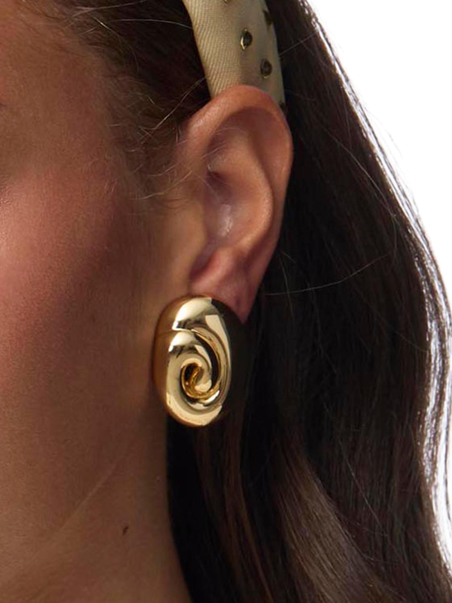 صُنعت أقراط Spiral Dome المزوّدة بمشبك من Lele Sadoughi في شكل ملتوي بطلاء لامع من الذهب عيار 14 قيراطًا.