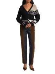 يُبرز كارديجان سبليت من موسكينو جينز التصميم بتقنية القص والخياطة، ويتميز برقبة على شكل حرف V وأكمام طويلة وتقليم مضلع.رقبة على شكل حرف V أكمام طويلة تسحب 40% صوف/ 25% فيسكوز/ 25% نايلون/ 10% كشمير يُغسل في الغسالة مستوردة