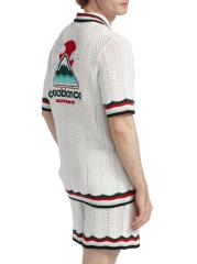 يتميز قميص كازابلانكا هذا المصنوع من القطن المحبوك بشيفرون بزخرفة مخططة محبوكة على شكل أضلاع عند ياقة المخيم والأساور والحاشية. تُبرز الأزرار المصنوعة من اللؤلؤ الصناعي الفتحة الأمامية للحصول على لمسة نهائية راقية.