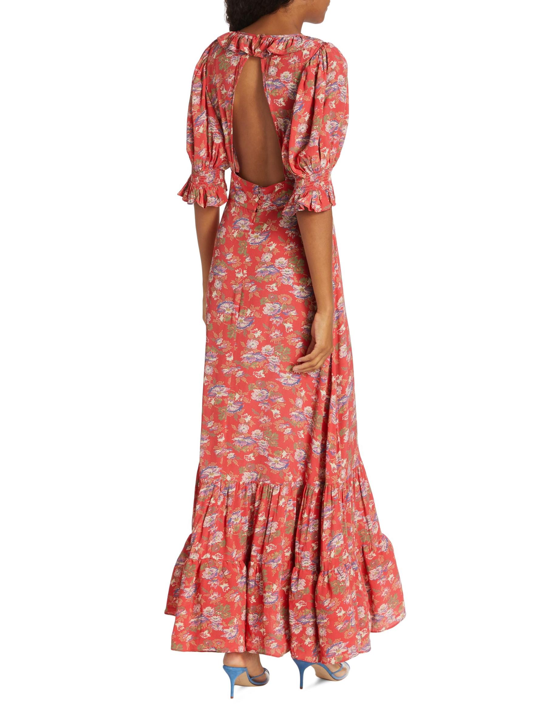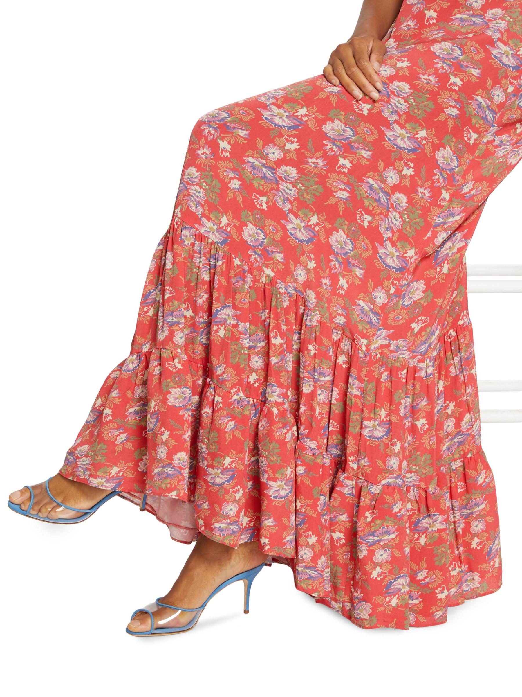 فستان ماكسي بطبقات بنقشة الزهور لفصل الربيع