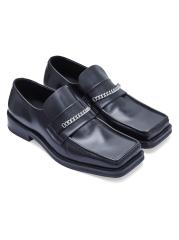 صُنعت هذه الأحذية من Martine Rose من الجلد بتصميم مذهل بمقدمة مربعة. صُنع هذا الزوج في البرتغال، وتم تصميمه بسلسلة فضية اللون تزين الحذاء ونعل مطاطي.