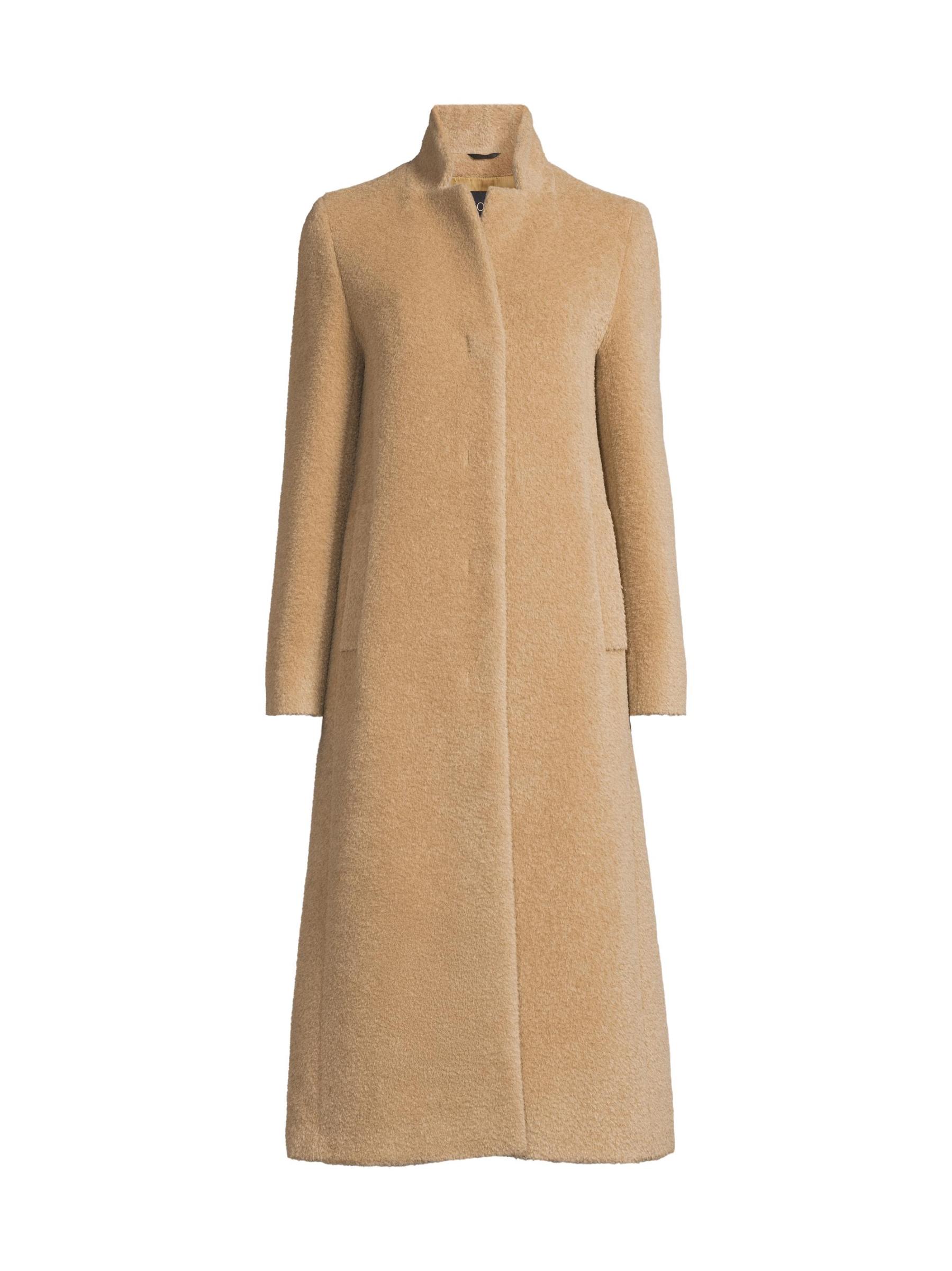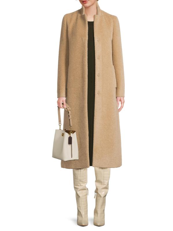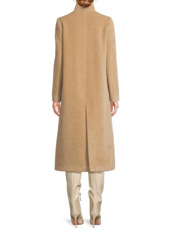 معطف طويل من الصوف والألبكة بياقة ثابتة