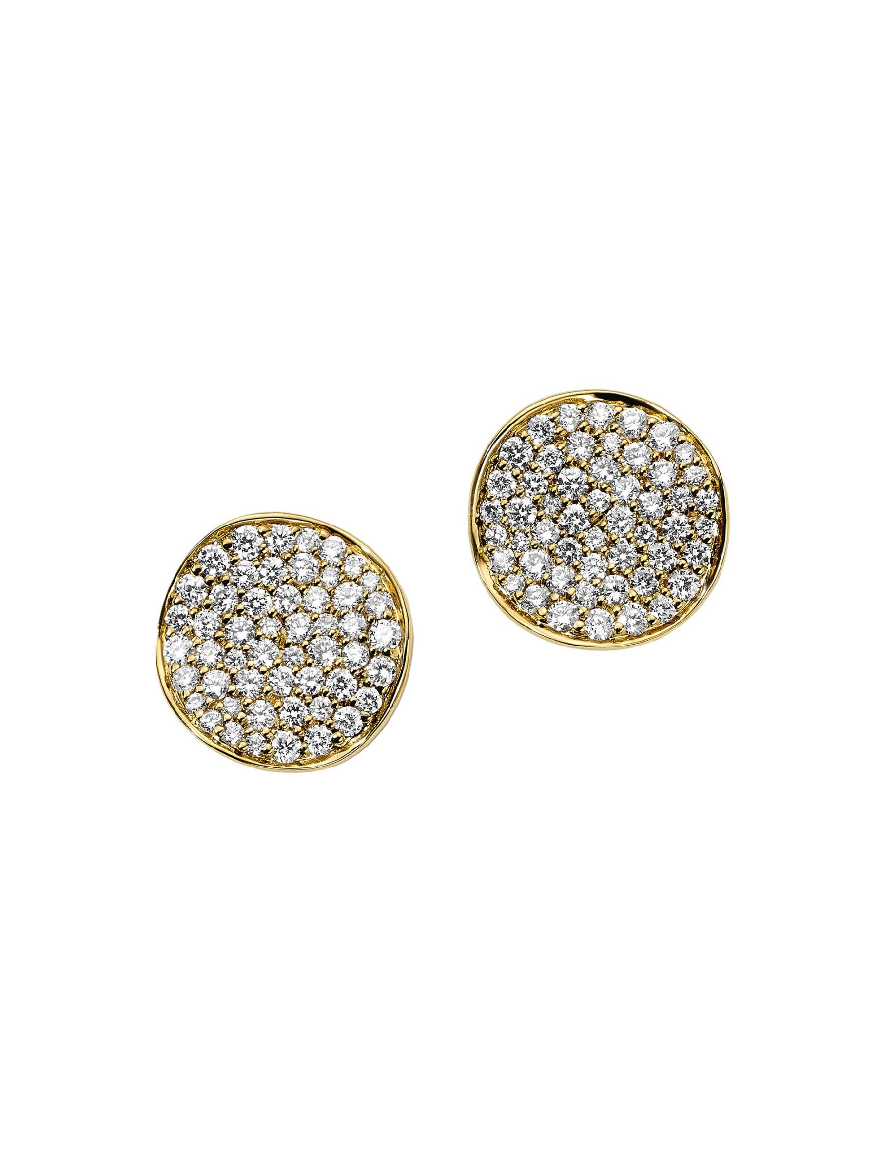 من مجموعة ستاردست. تتألق أقراط إيبوليتا المرصعة ذات الشكل العضوي المصنوعة يدويًا من الذهب الأصفر عيار 18 قيراطًا بشكل جميل مع الماس المرصوف.