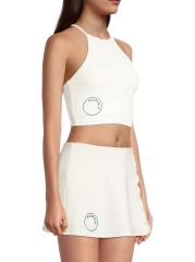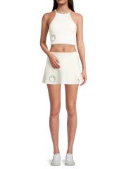 تتميّز هذه البلوزة الرياضية القصيرة بشعار على الحافة مع فتحة رقبة صدفية.رقبة هالتيرنك بدون أكمام نمط بلوفر 88% بولياميد/ 12% إليستين يُغسل في الغسالة مستوردة