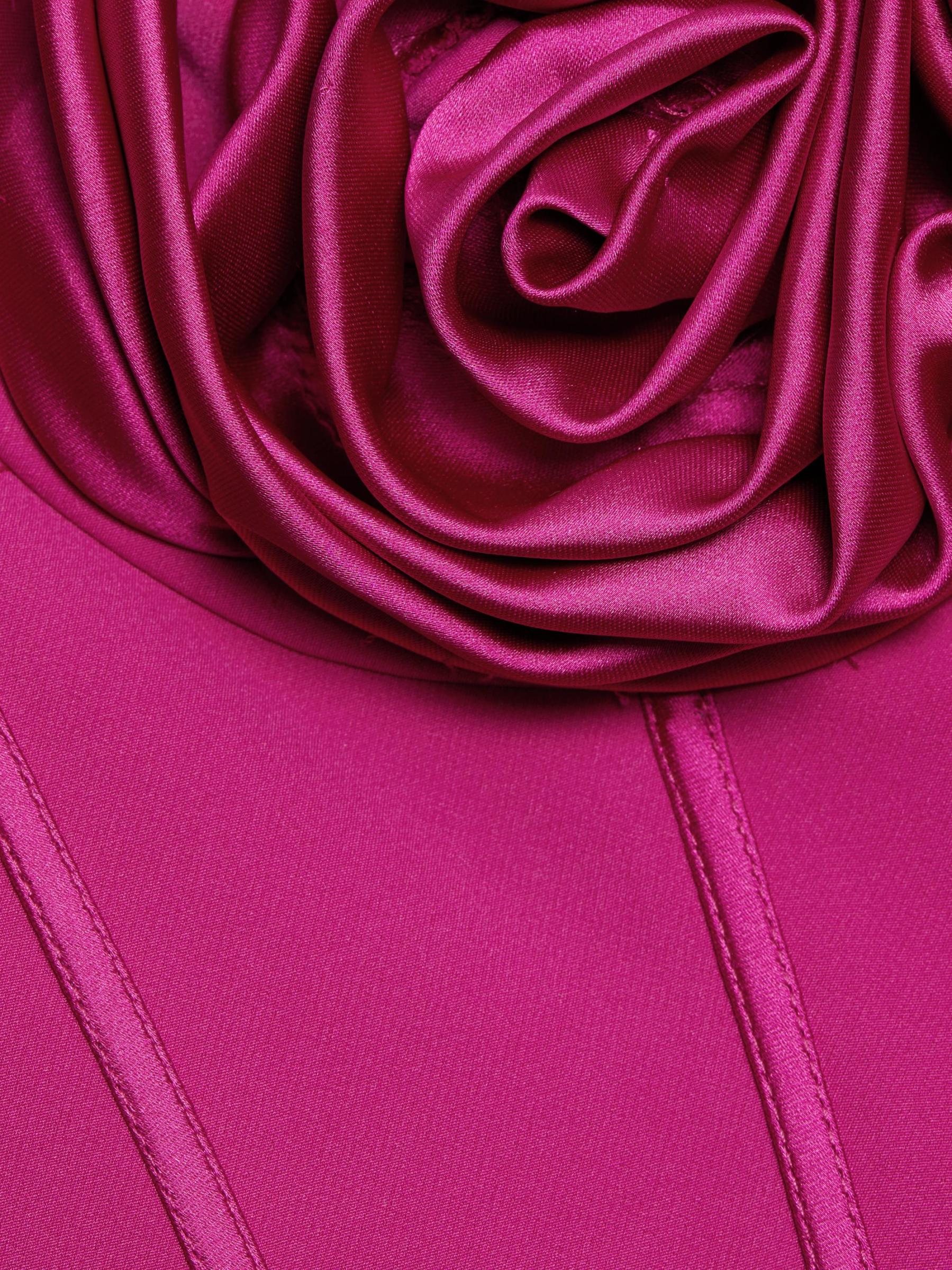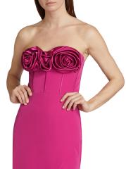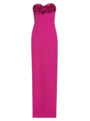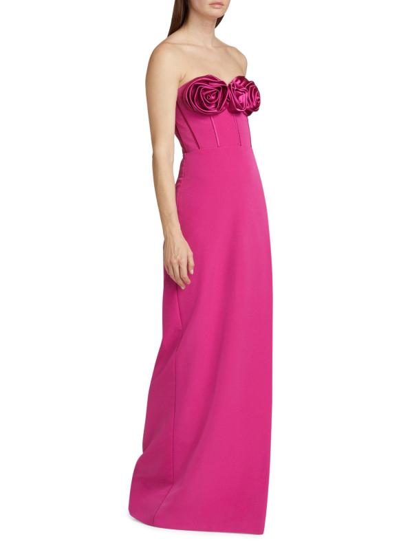 يتميّز فستان Stella من ML Monique Lhuillier برقبة على شكل قلب ذات أبعاد وردية وصدّار مستوحى من الكورسيه. تم تزيين هذه القطعة بدون حمالات بتنورة بقصة مستقيمة.