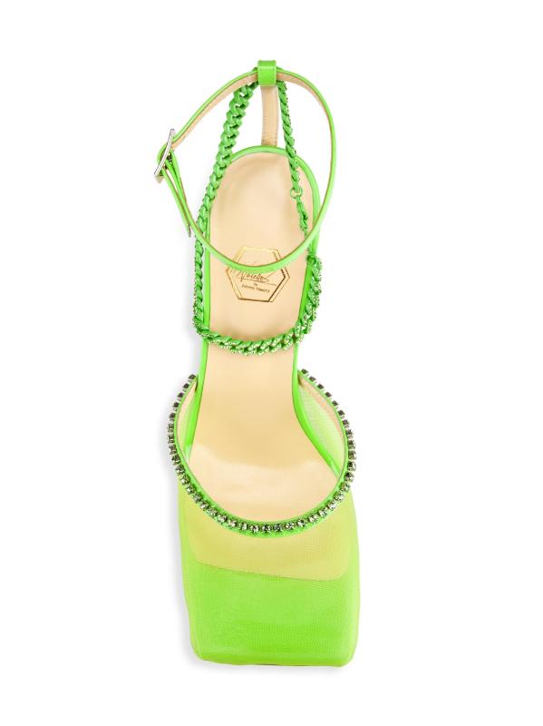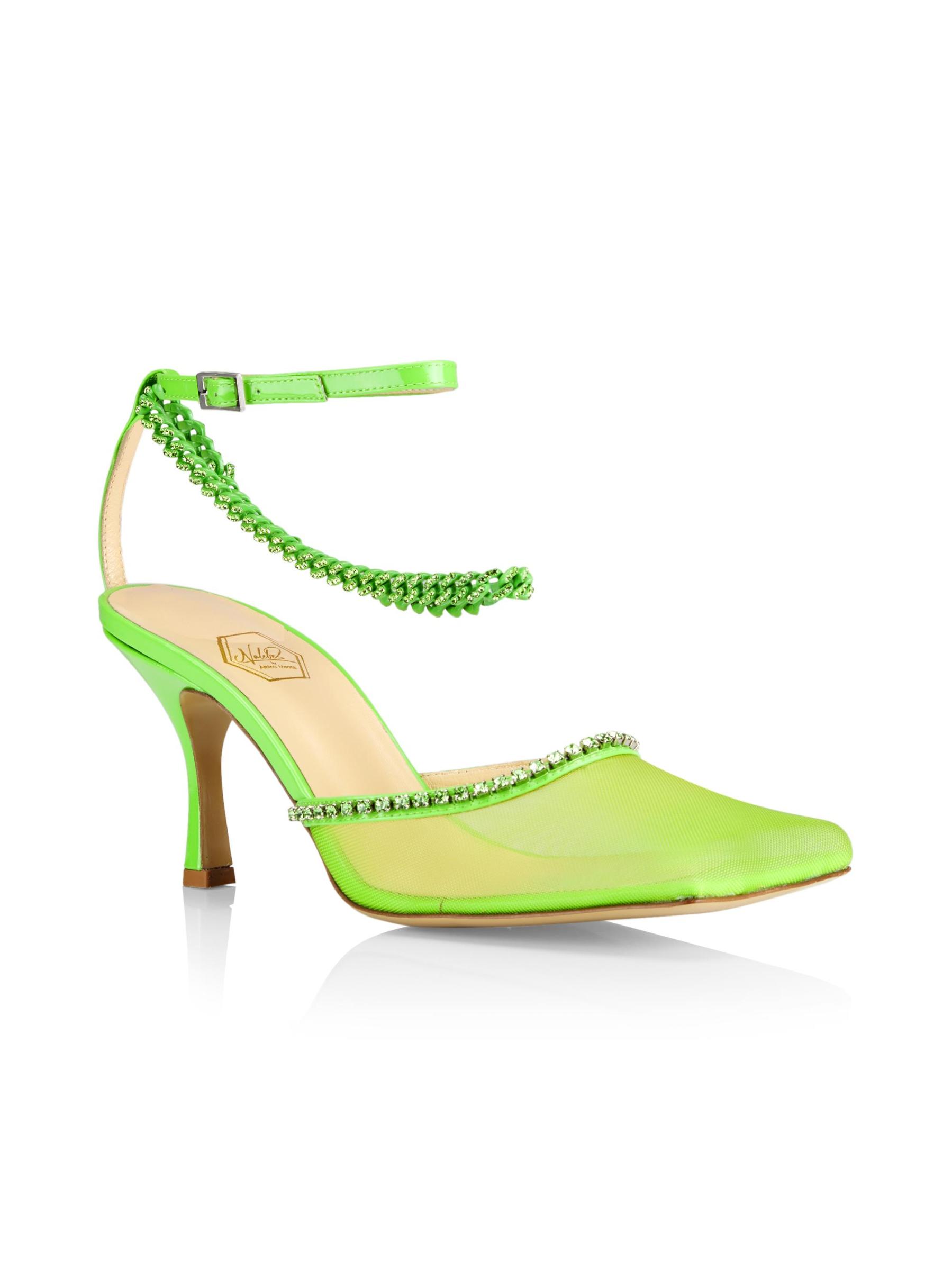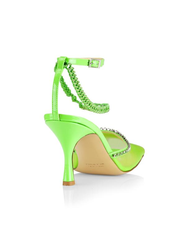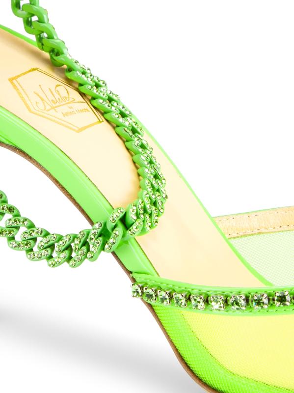 من مجموعة تأملات. تتميز أحذية Stellar من Nalebe بجزء علوي شبكي مزين بالكريستال وبسوار كاحل على شكل سلسلة.الجزء العلوي مصنوع من الجلد والنايلون إصبع مربع إغلاق بمشبك ومشبك بطانة جلدية نعل من جلد العجل صُنع في إيطاليا