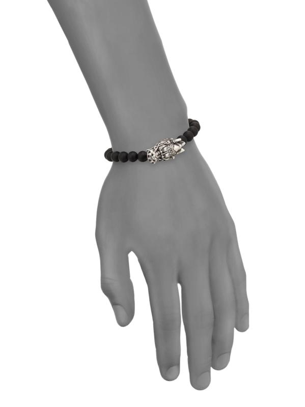 سوار قابل للتمدد بخرز لافا روك من الفضة الإسترلينية على شكل رأس التنين