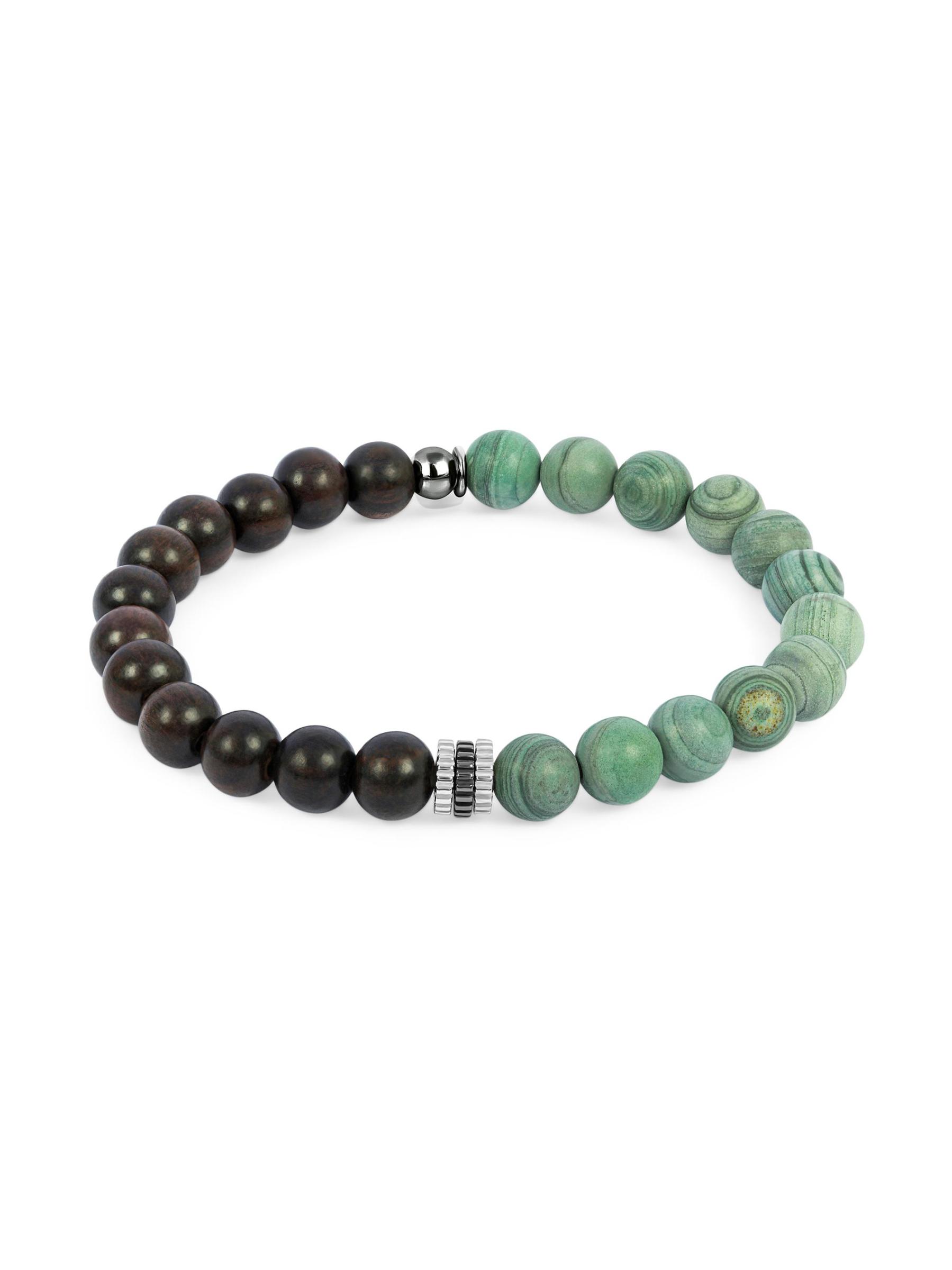 يتميز هذا السوار المصنوع من الخرز التاتيوسي المصنوع من الفضة الإسترلينية بلمسات من اليشب الخشبي الأخضر وخشب الأبنوس مع لمسة نهائية راقية وملمسة.