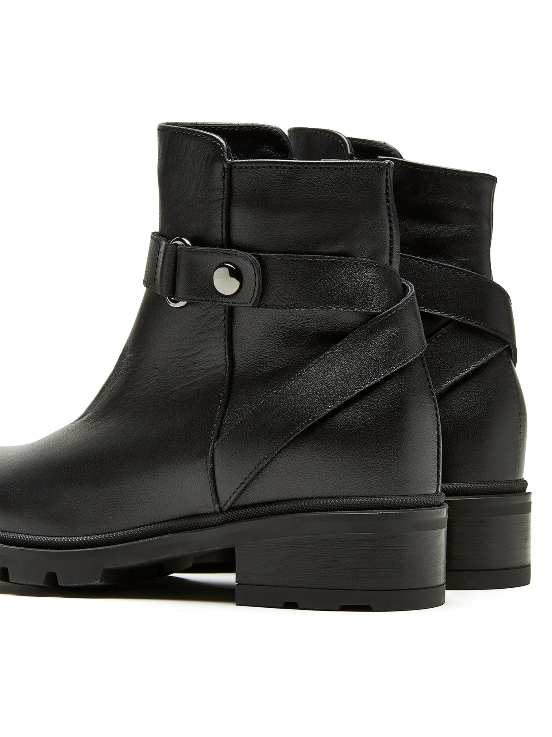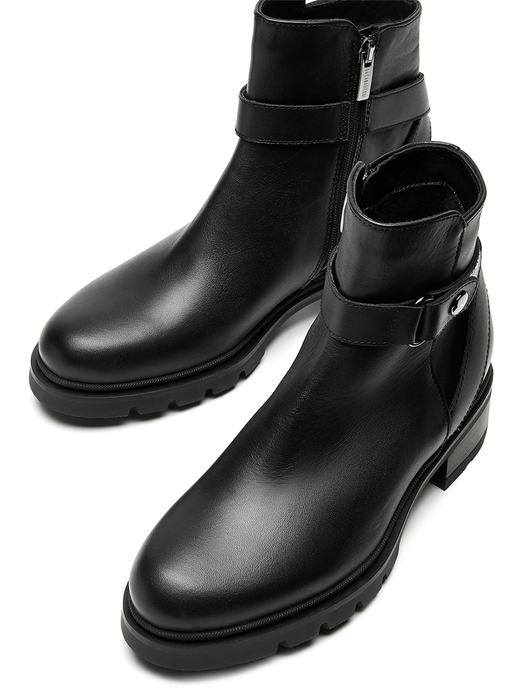 صُنعت هذه الجوارب المصنوعة من الجلد من Steven من La Canadienne بمقدمة مستديرة وسحّاب جانبي وحزام مشبك مزخرف. يتميز هذا الزوج بتقنية City Dry™ الخاصة بالعلامة التجارية للحماية من الماء.