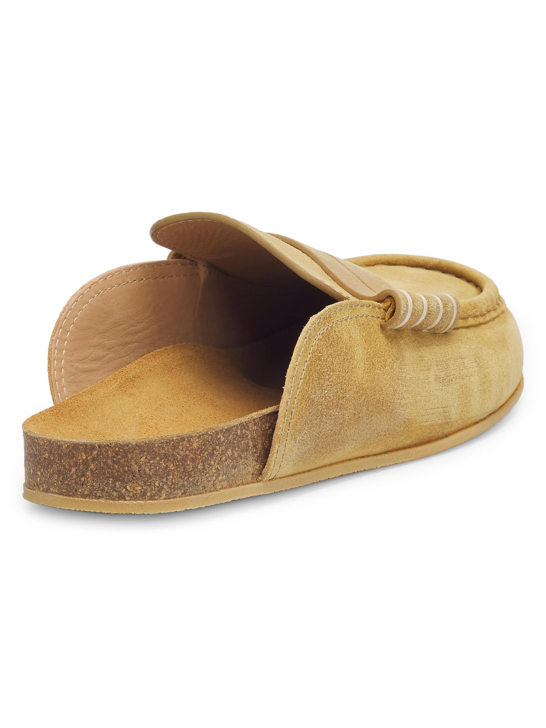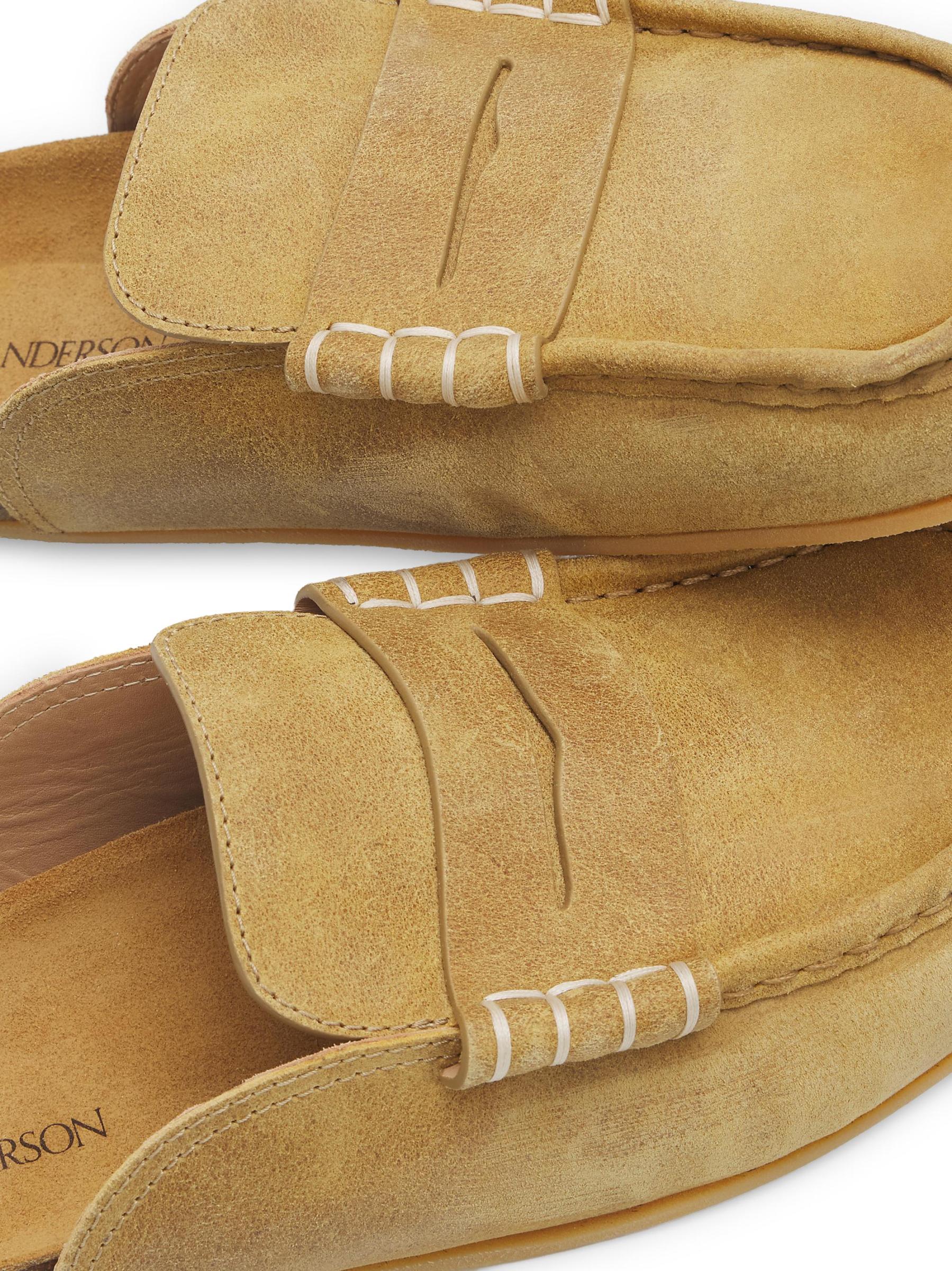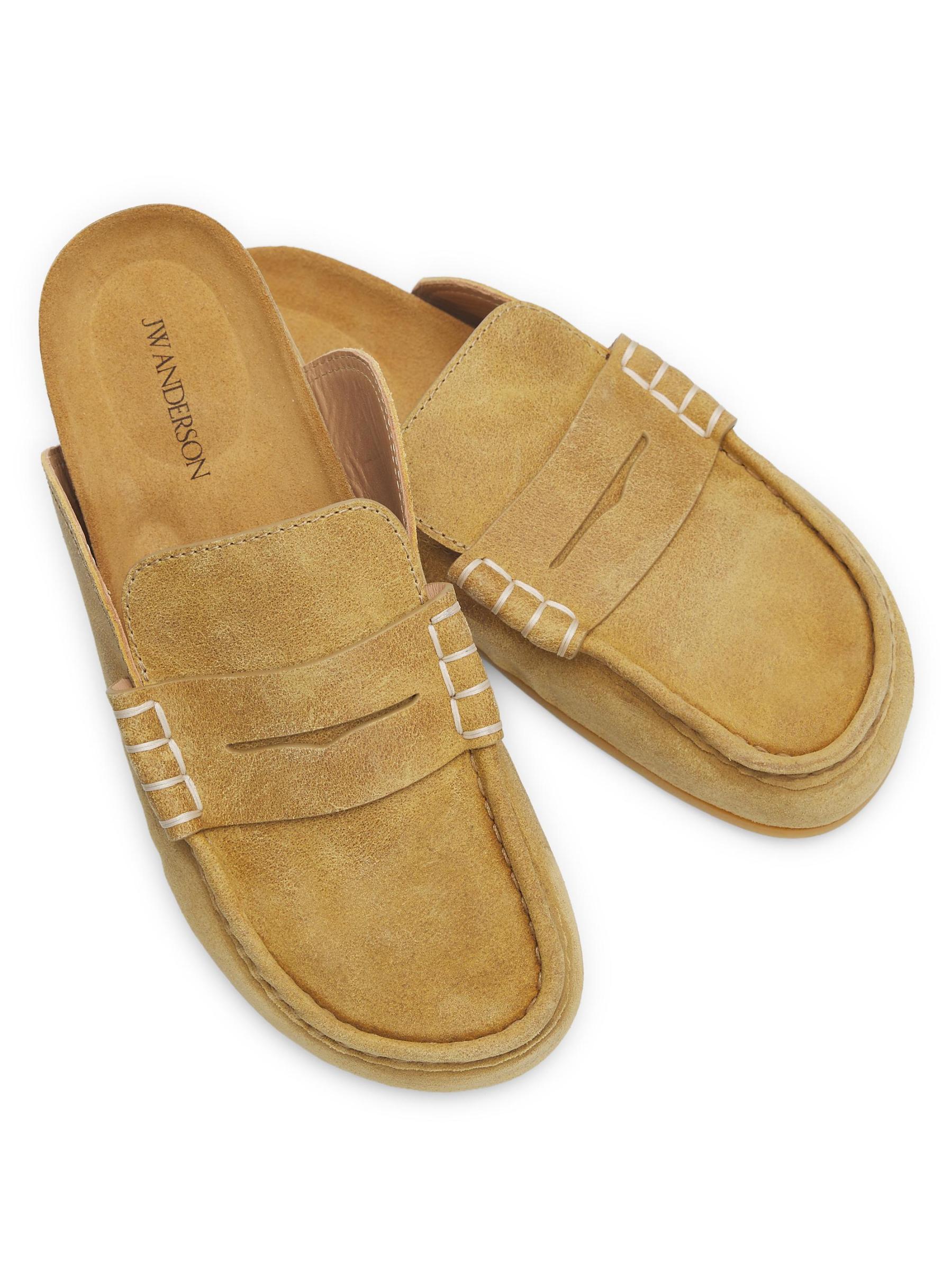 تتميز أحذية Stitch من JW Anderson المصنوعة من الجلد السويدي الإيطالي المشمع بأسلوب سهل الارتداء مع كعب مفتوح ووسادة قدم من الفلين. الجزء العلوي مزين بشريط كلاسيكي وخياطة جانبية متباينة.