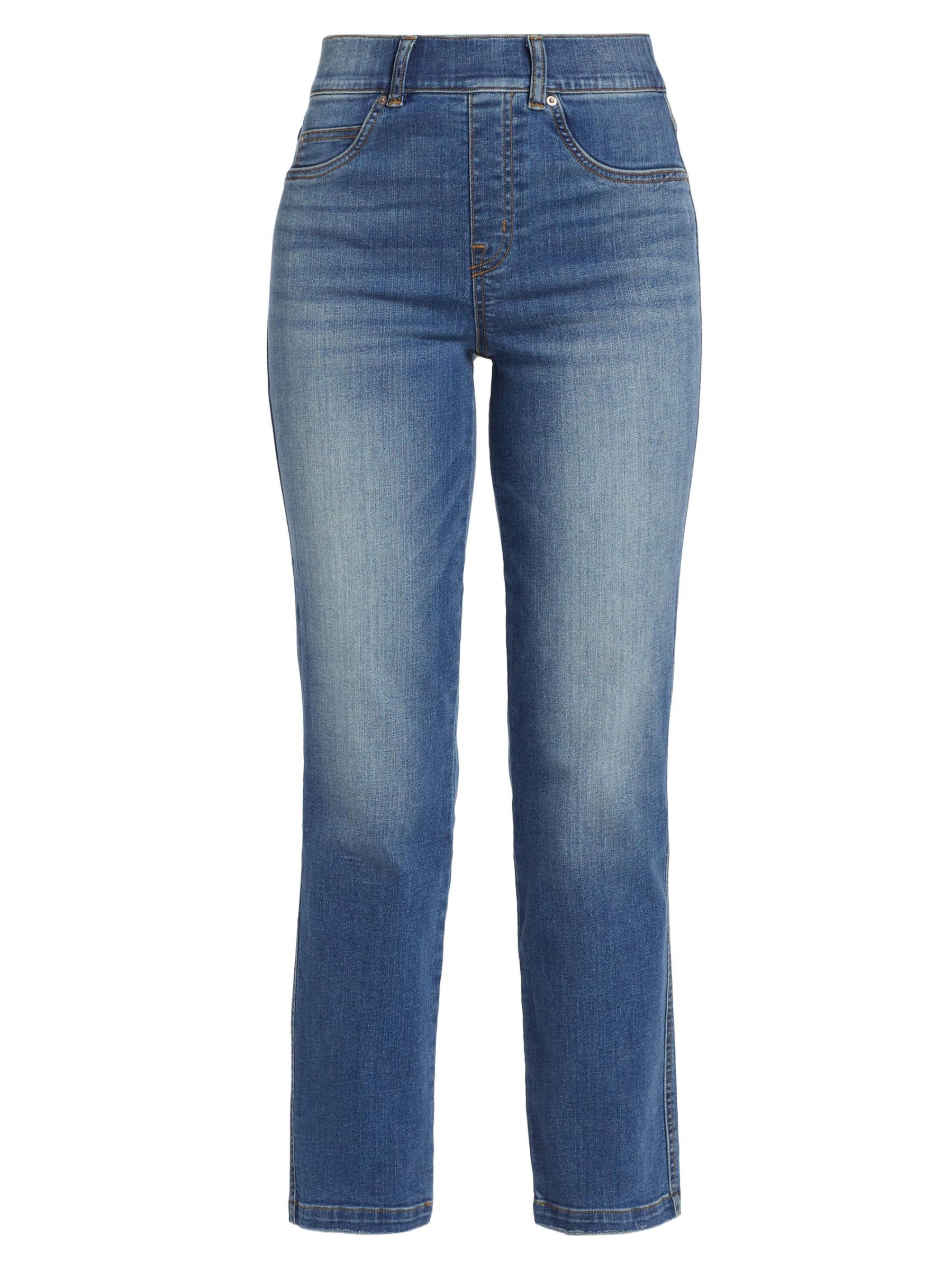 يُعد الجينز القابل للسحب ذو الساق المستقيمة من Spanx خيارًا مثاليًا للاستخدام اليومي، وهو مصمم من الدنيم القابل للتمدد المريح وتغطية عالية الارتفاع وشكل البطن المخفي.
