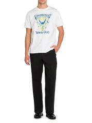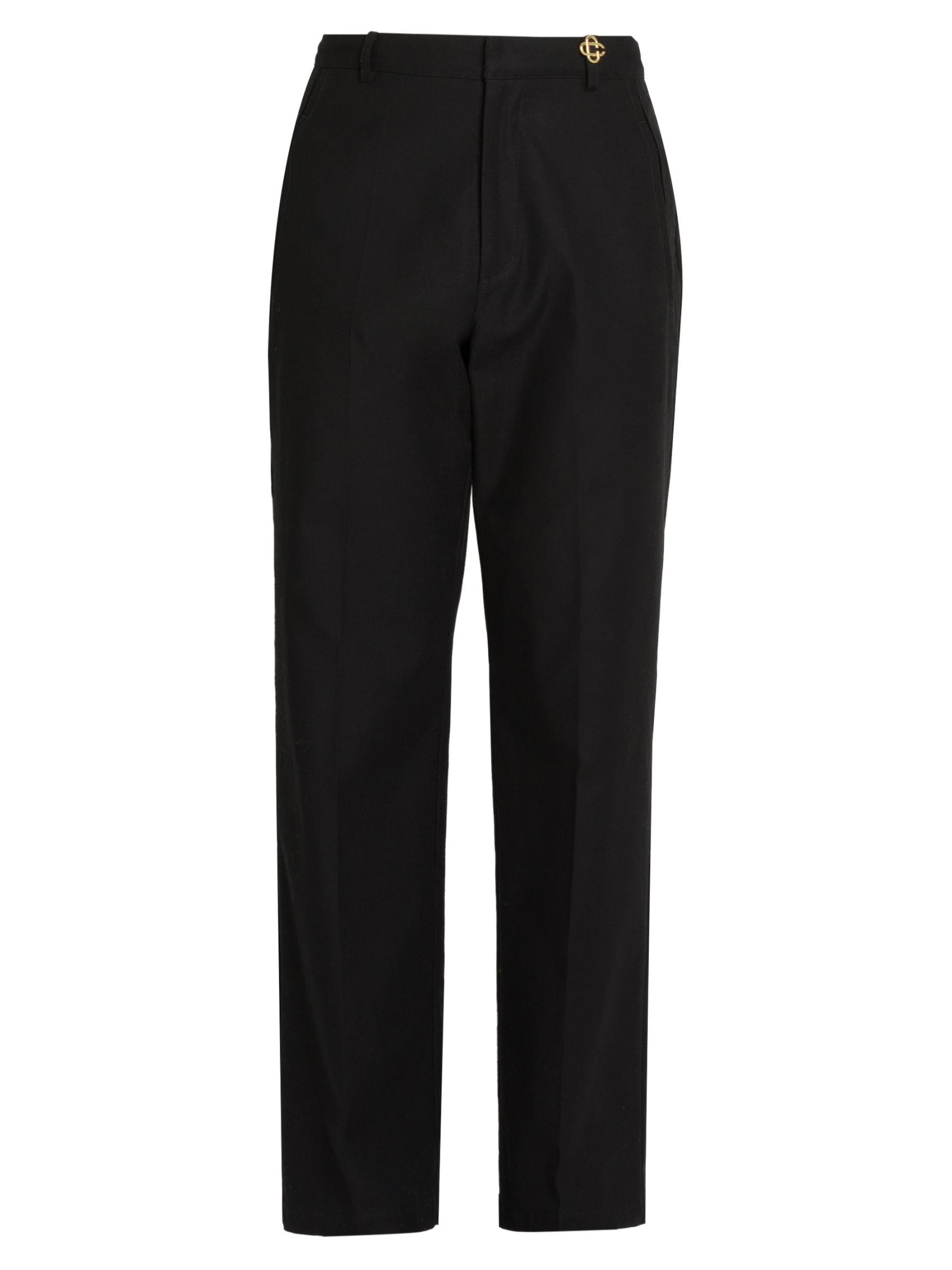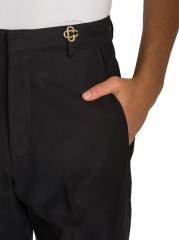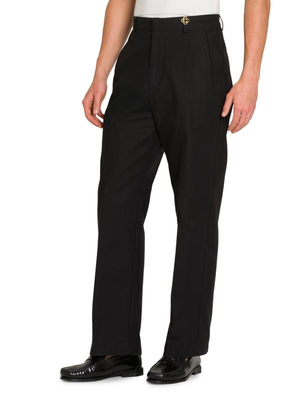 تتميّز هذه السراويل ذات الارتفاع المتوسط والساق المستقيمة من الدار البيضاء، المصنوعة من القطن المرن، بتزيينها بشعار ذهبي اللون على الخصر.