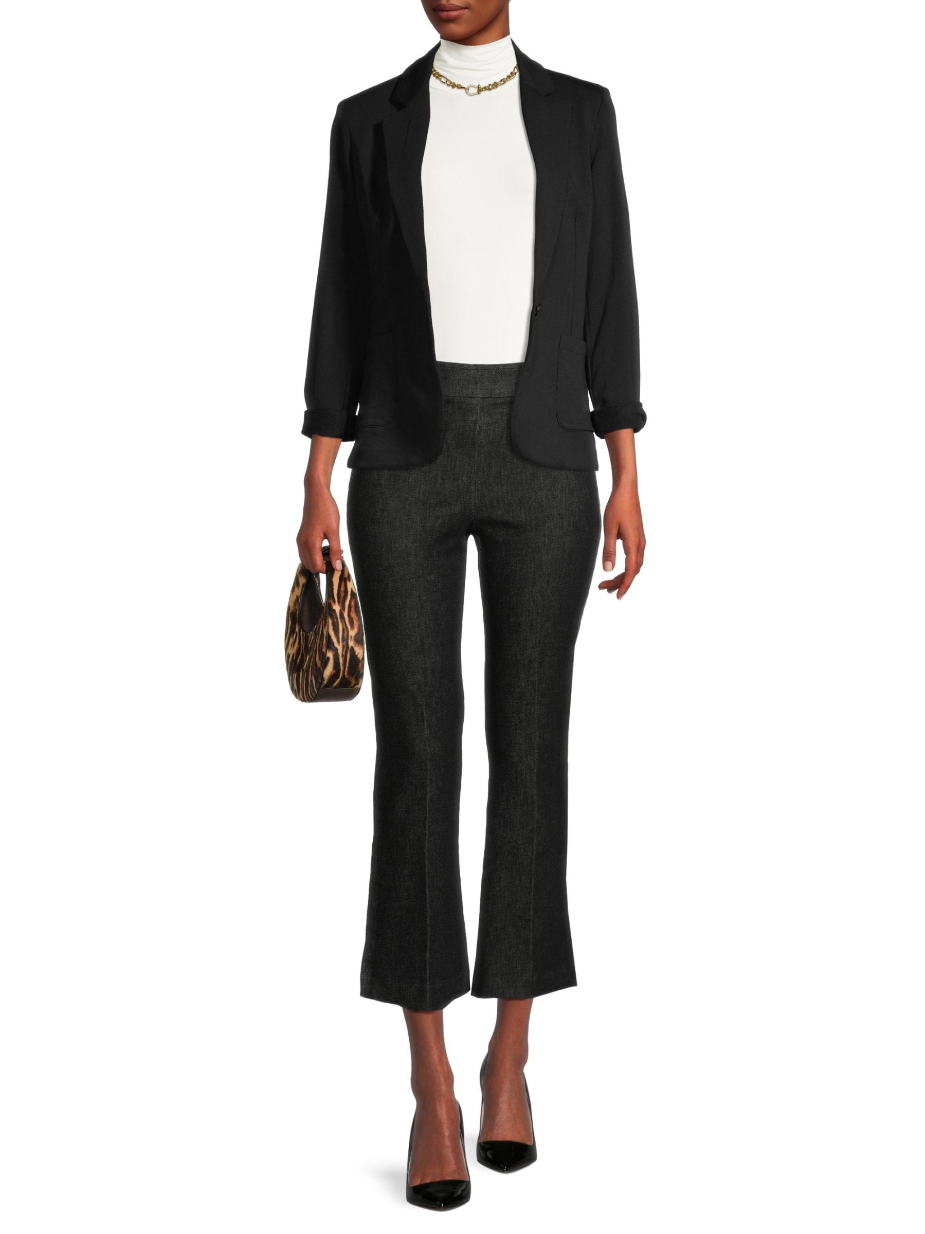يتميز هذا البنطال من أفينيو مونتين، المصنوع من الدنيم المرن، بواجهة أمامية مسطحة مطاطية وتصميم قصير متوهج.