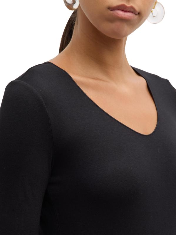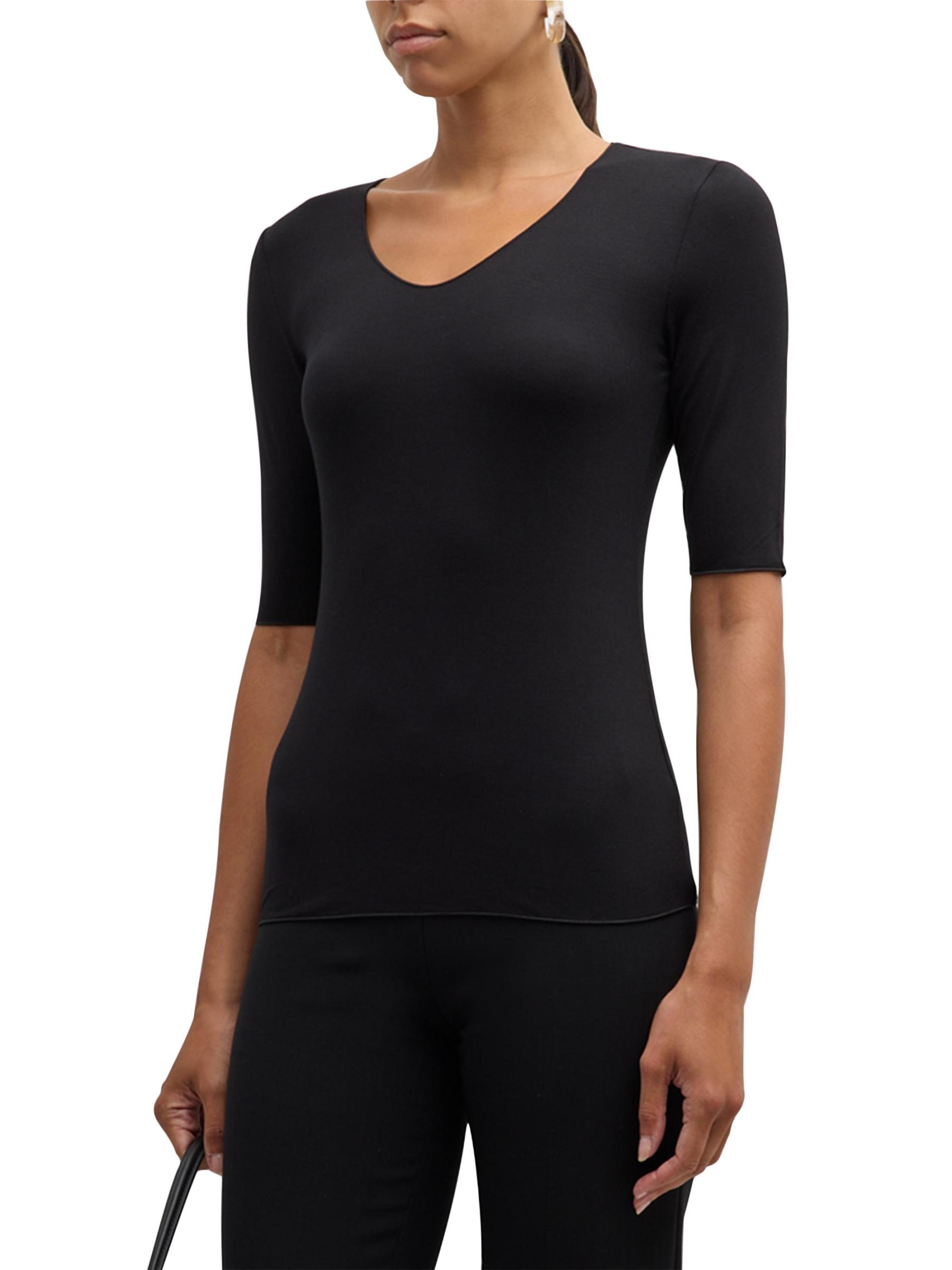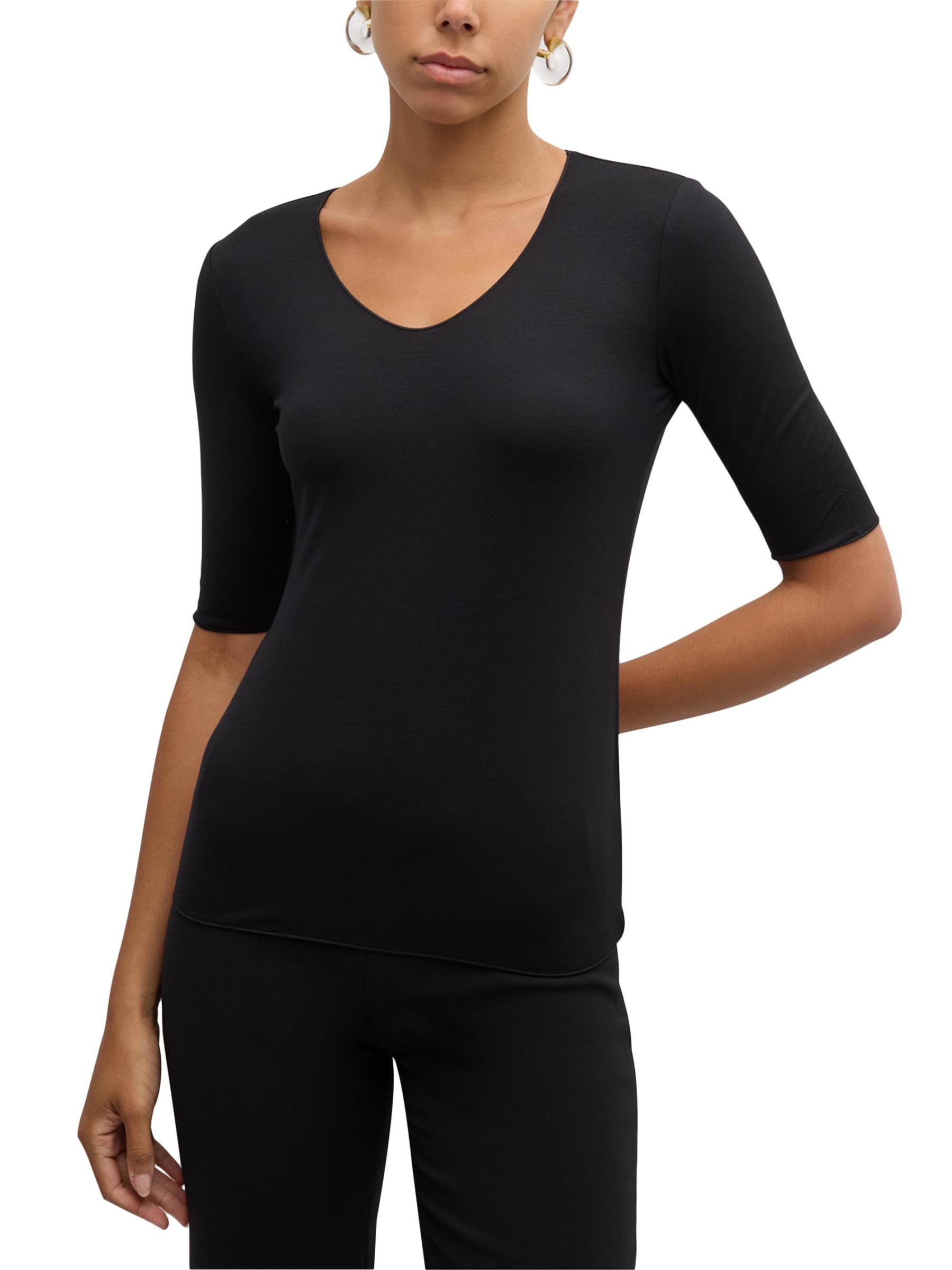 بلوزة جيرسي قابلة للتمدد بفتحة رقبة مستديرة