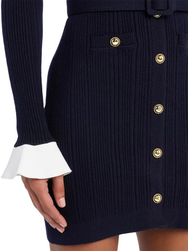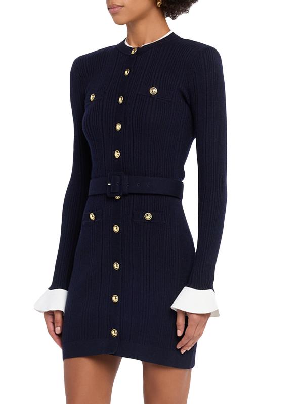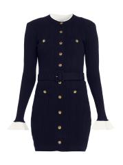 تم تصميم هذا الفستان القصير المحبوك من Self-Portrait بأزرار منقوشة باللون الذهبي، ويتميز بتصميم الجسم بحزام وأساور مضيئة بلون مغاير.رقبة مستديرة أكمام طويلة وأساور مضيئة جيوب أمامية مزودة بأزرار حزام ذاتي قابل للإزالة إغلاق بأزرار أمامية نايلون/فيسكوز/صوف تنظيف جاف مستوردة