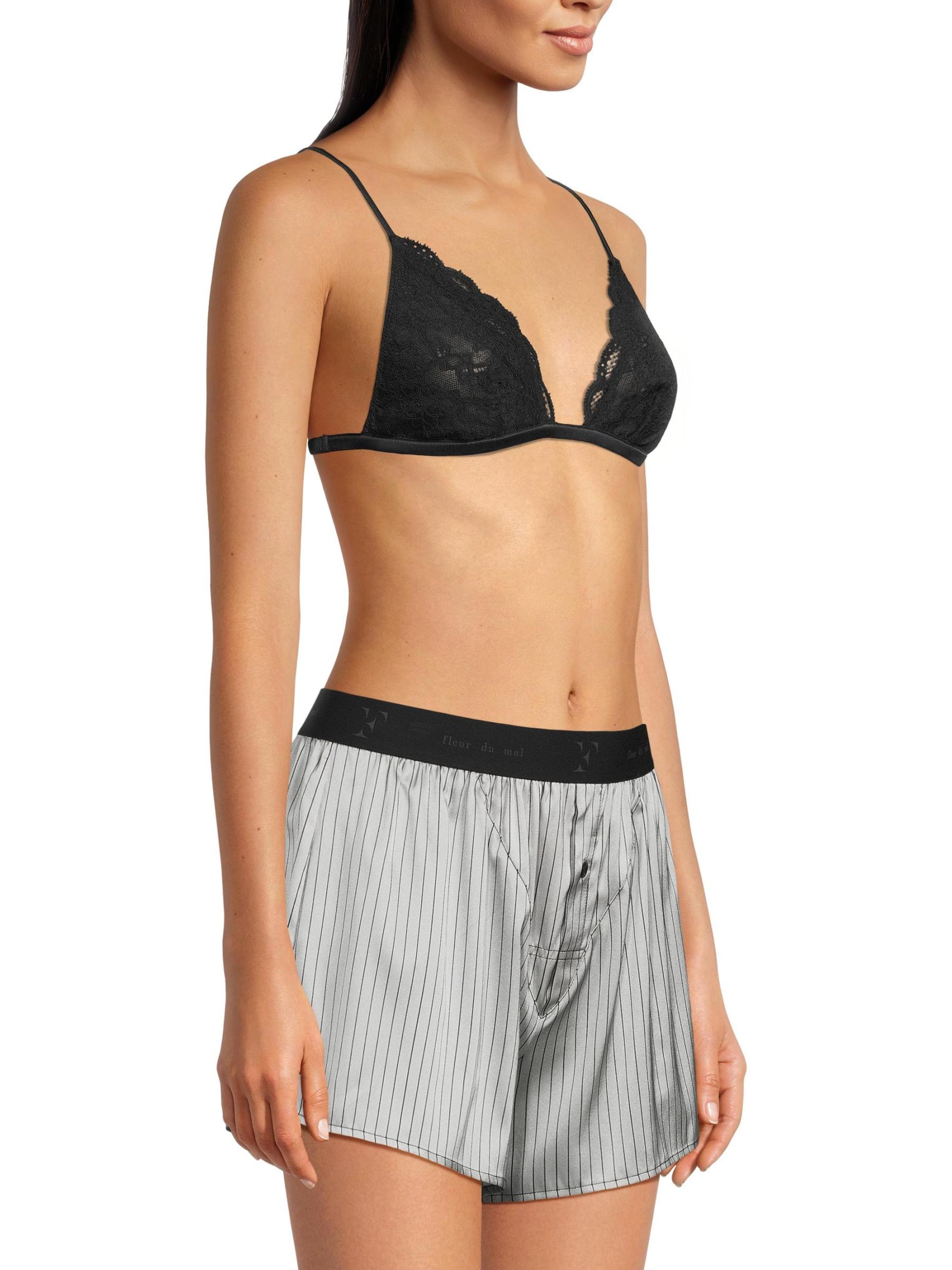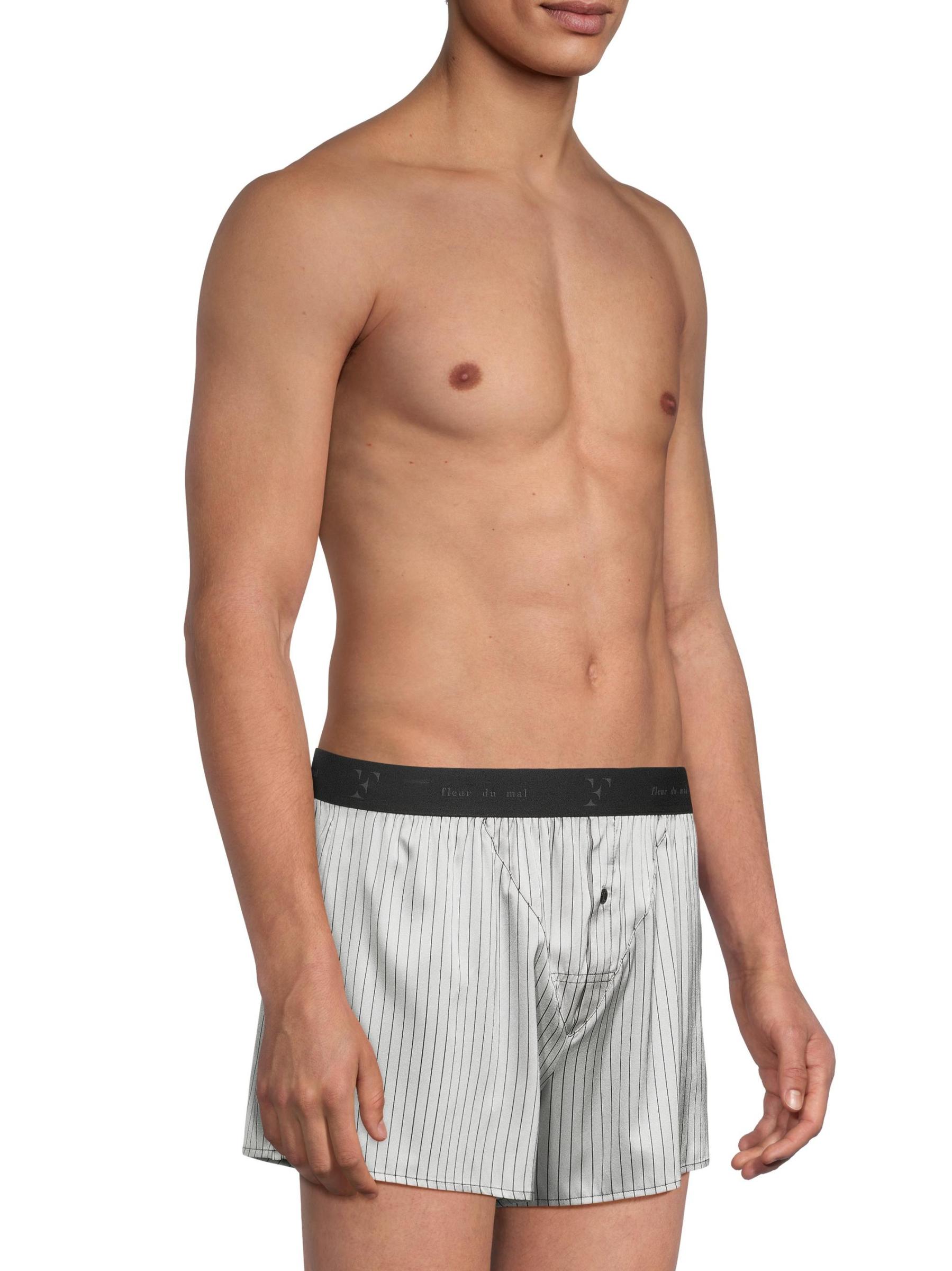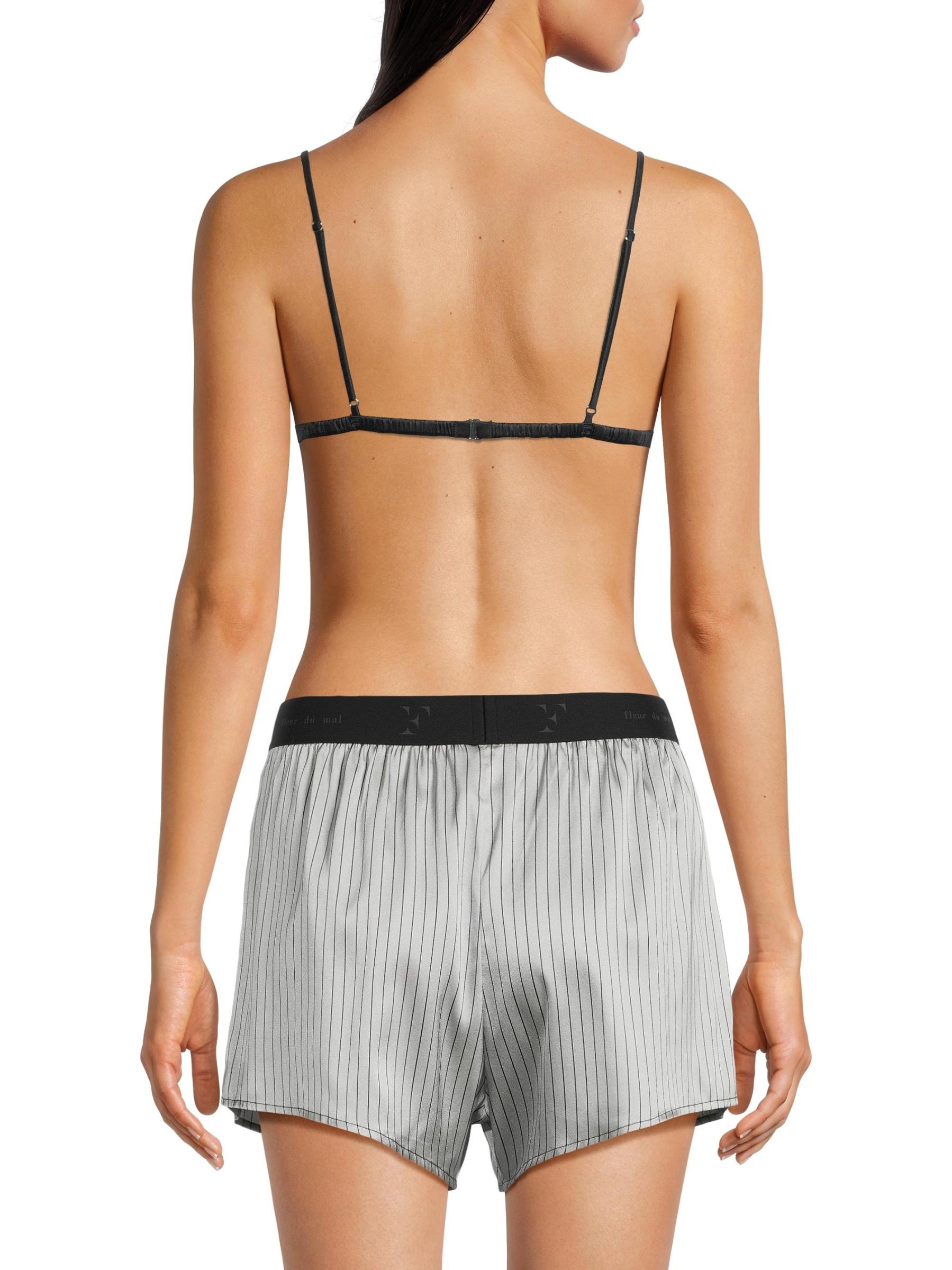 شورت بوكسر من Fleur du Mal مصنوع من الحرير القابل للتمدد، ويتميز بحزام خصر مطاطي بشعار مطاطي وفتحة زر.