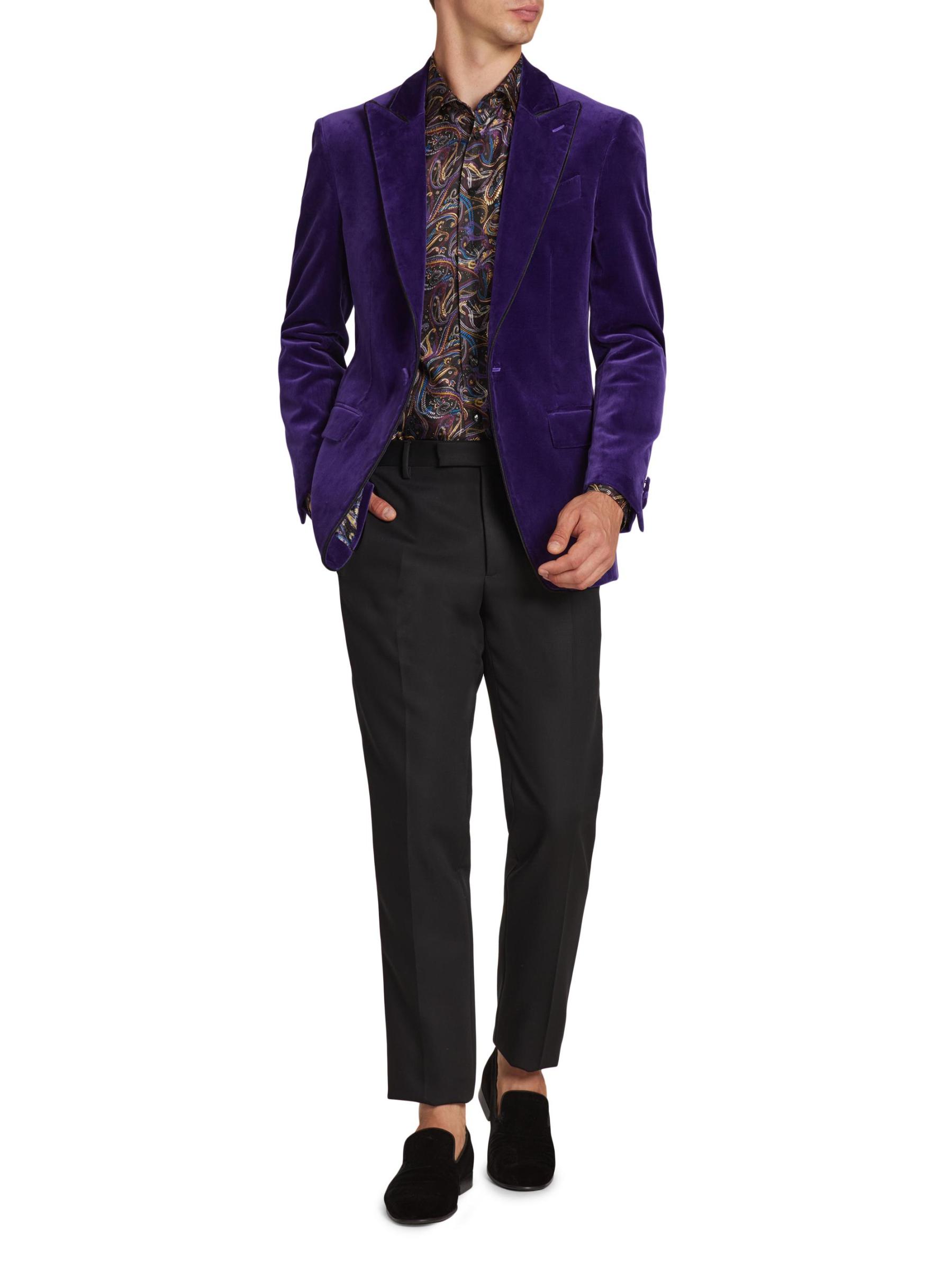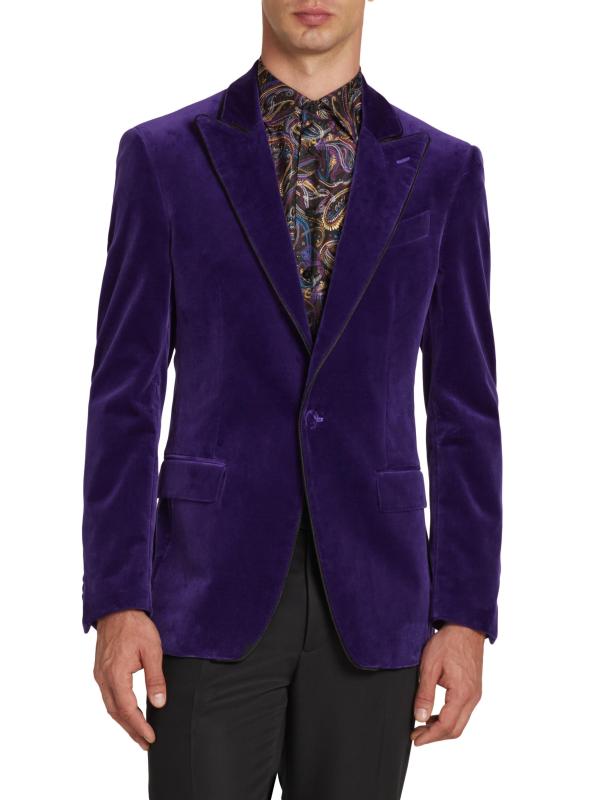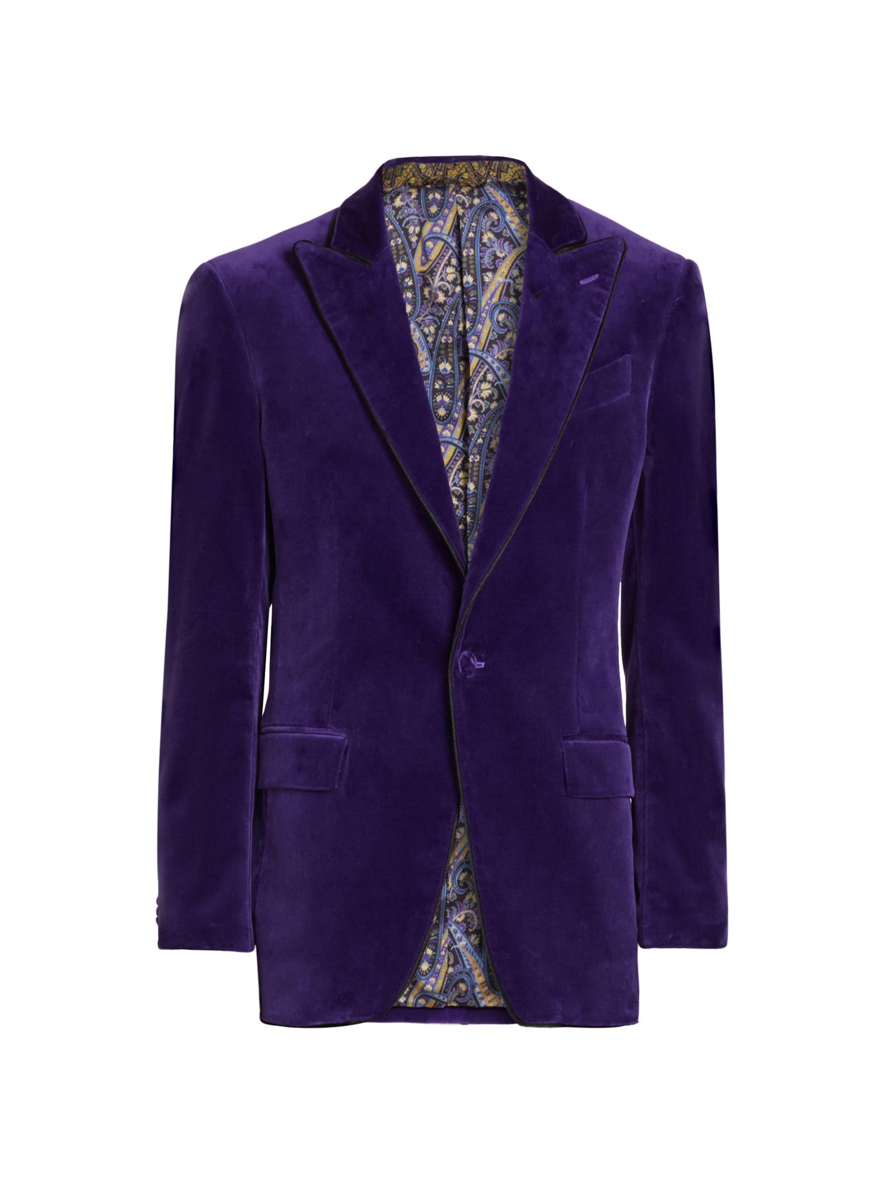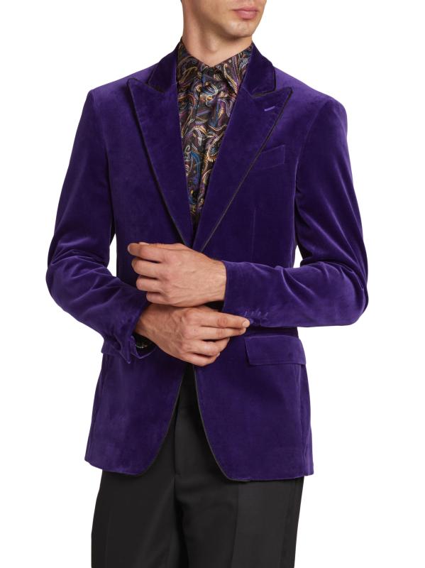 صُنعت سترة التوكسيدو هذه من إترو في إيطاليا من المخمل المرن.