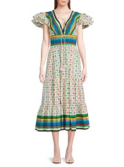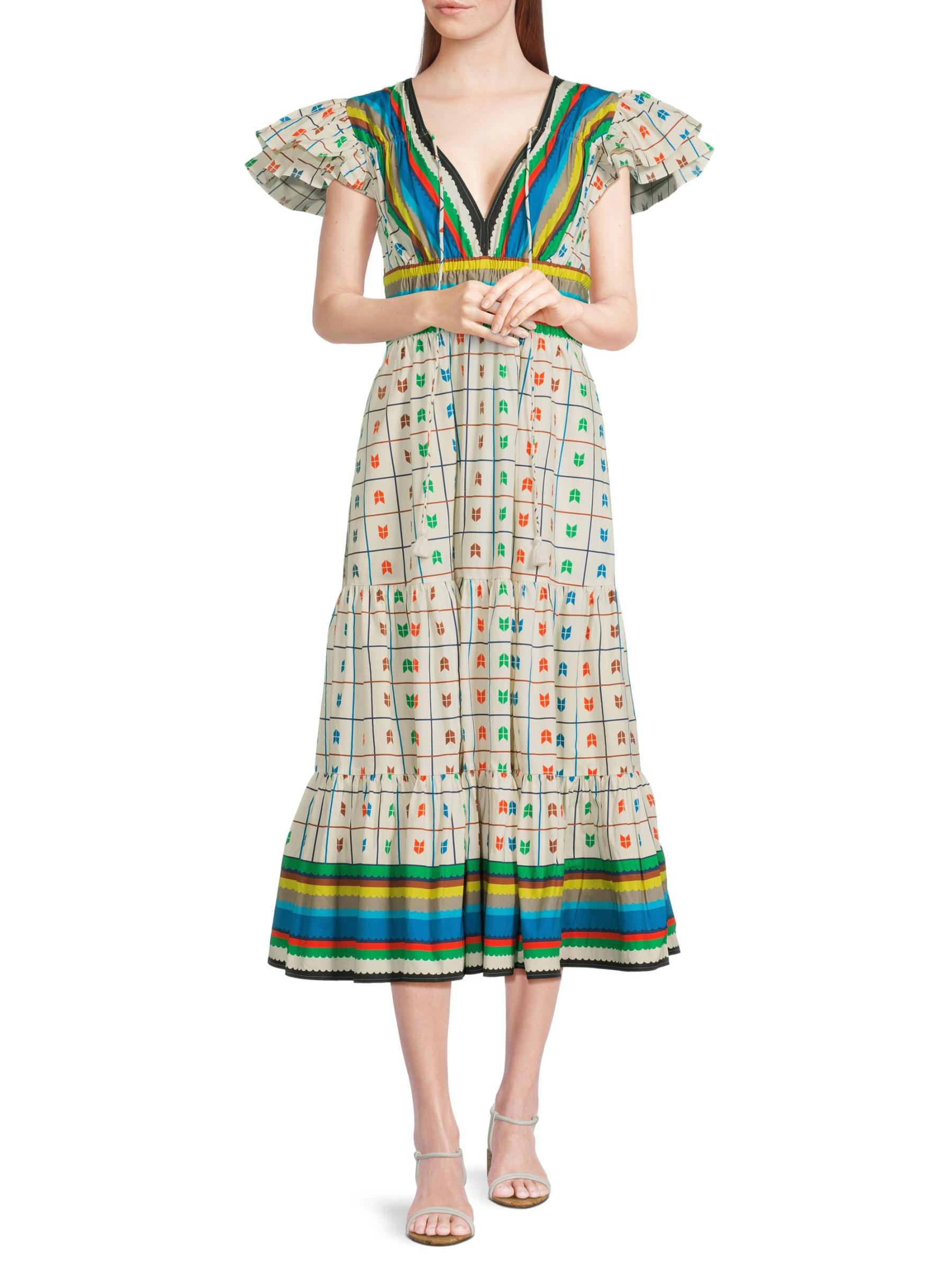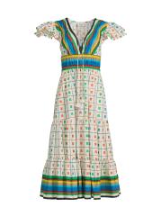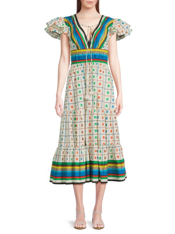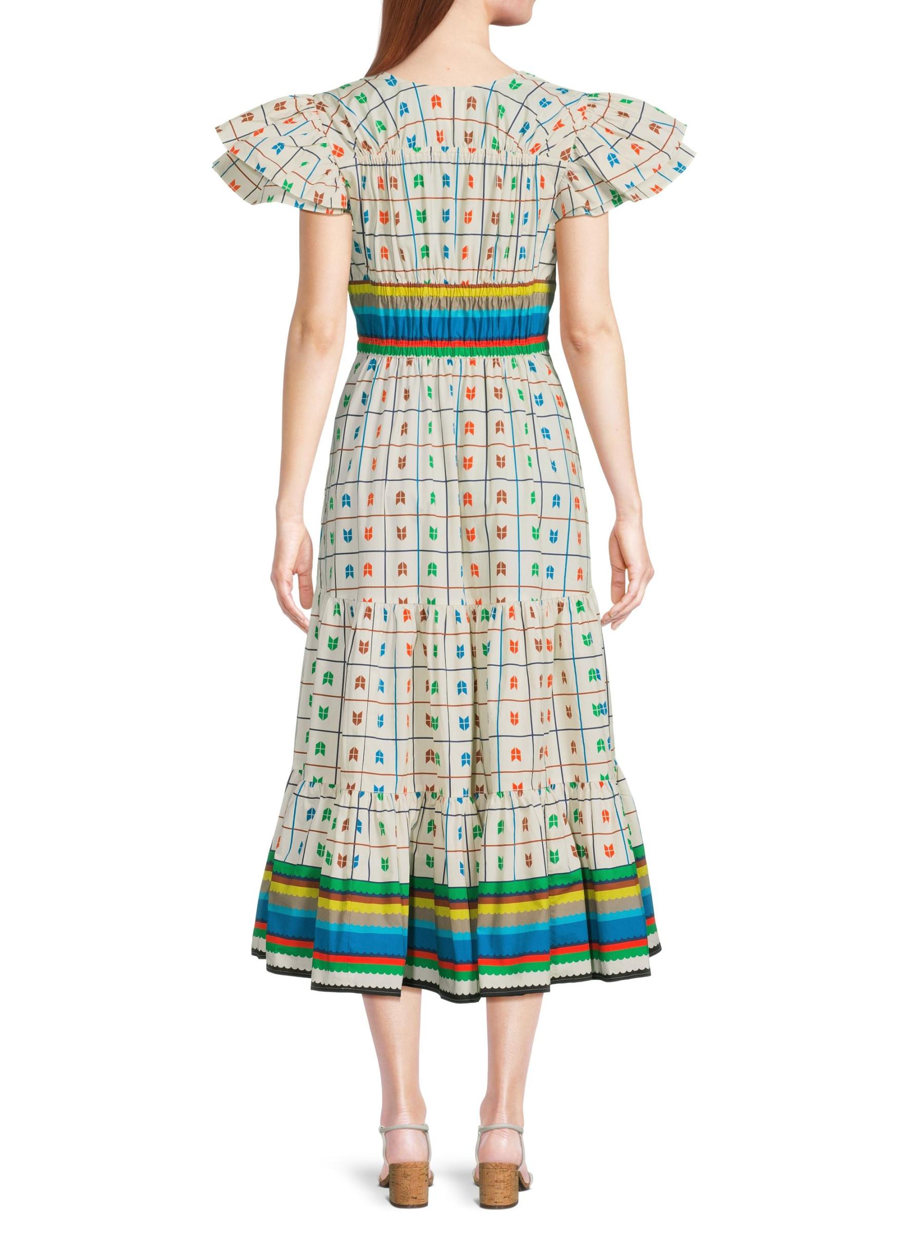 يُبرز فستان Hope for Flowers المتوسط المصنوع من القطن العضوي المطبوع على شكل شبكة، خطوطًا نابضة بالحياة عند الرقبة على شكل حرف V، وخصر مطاطي، وحاشية منسدلة.