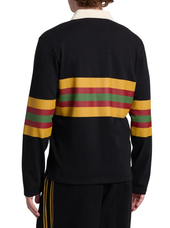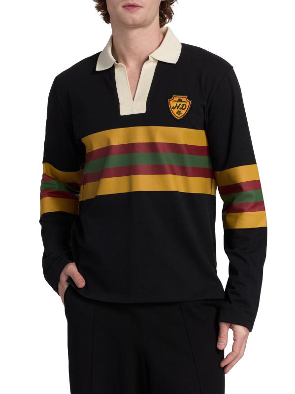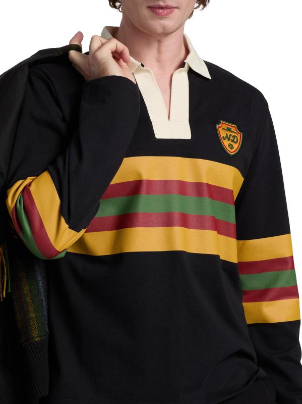 صُنع قميص الرجبي هذا من قماش الجيرسي القطني من نيكولاس دالي بتفاصيل مخططة وشعار مطرّز على الصدر.طوق سبريد رقبة على شكل حرف V أكمام طويلة تقليم مضلع تسحب قطن بنسبة 100% تنظيف جاف صُنع في البرتغال