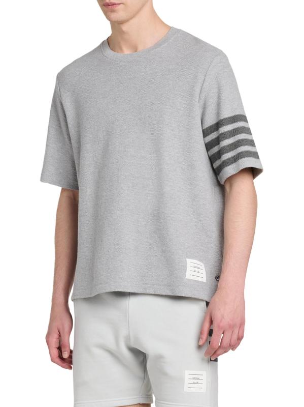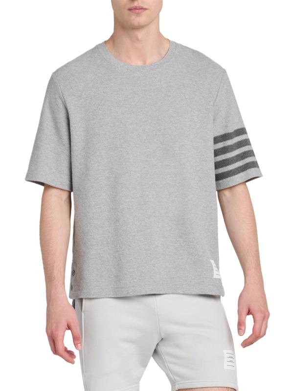 يتميز هذا القميص المصنوع من القطن من Thom Browne بتفاصيل مخططة على الأكمام.رقبة مستديرة أكمام قصيرة تسحب قطن بنسبة 100% المجموعة: 90% قطن/ 10% إليستين تنظيف جاف صُنع في إيطاليا