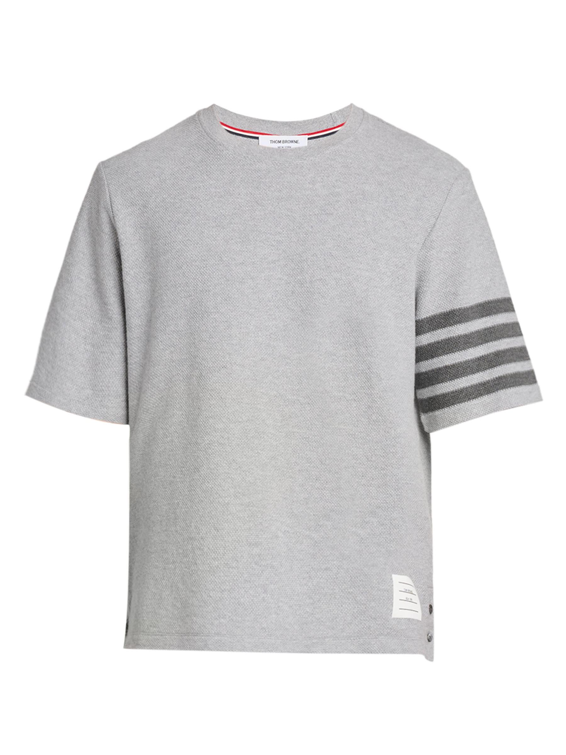 يتميز هذا القميص المصنوع من القطن من Thom Browne بتفاصيل مخططة على الأكمام.