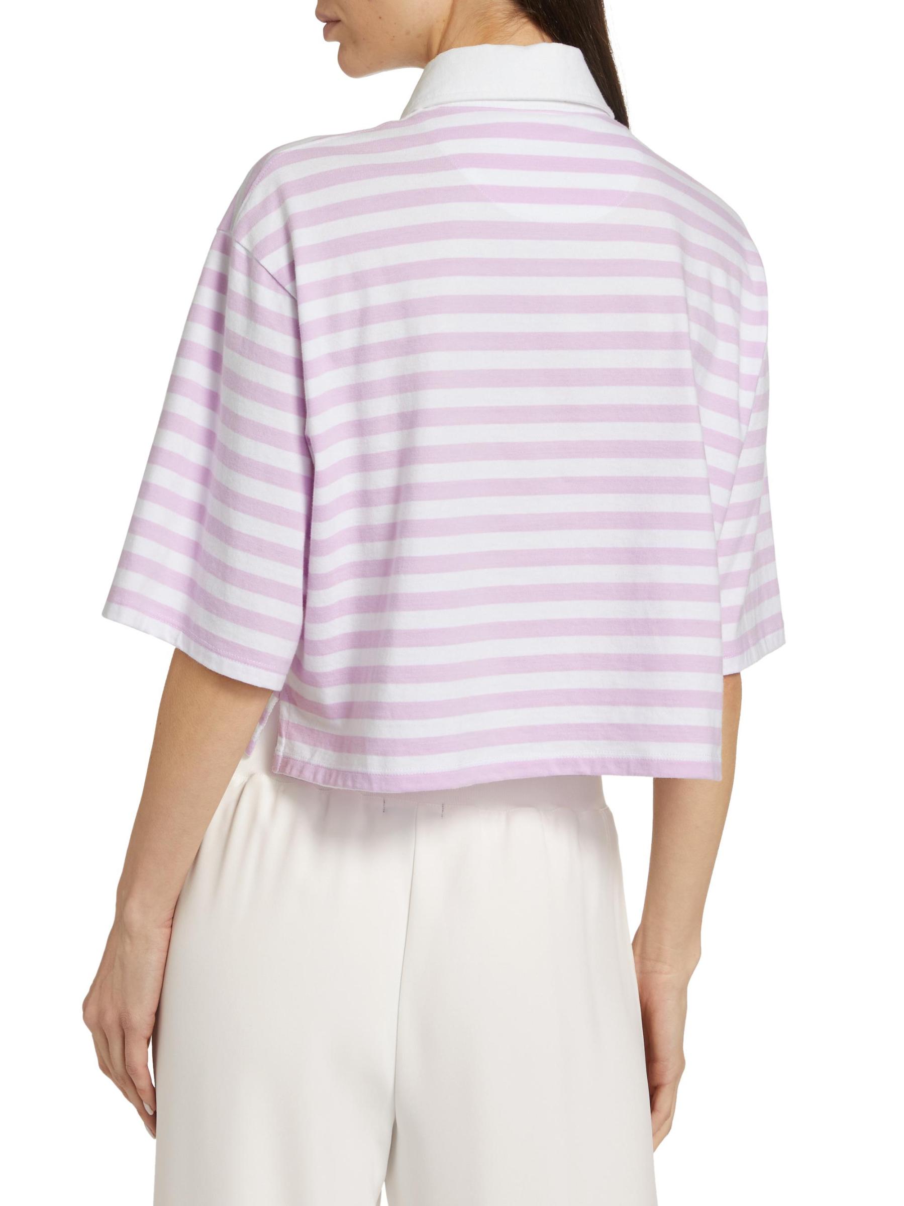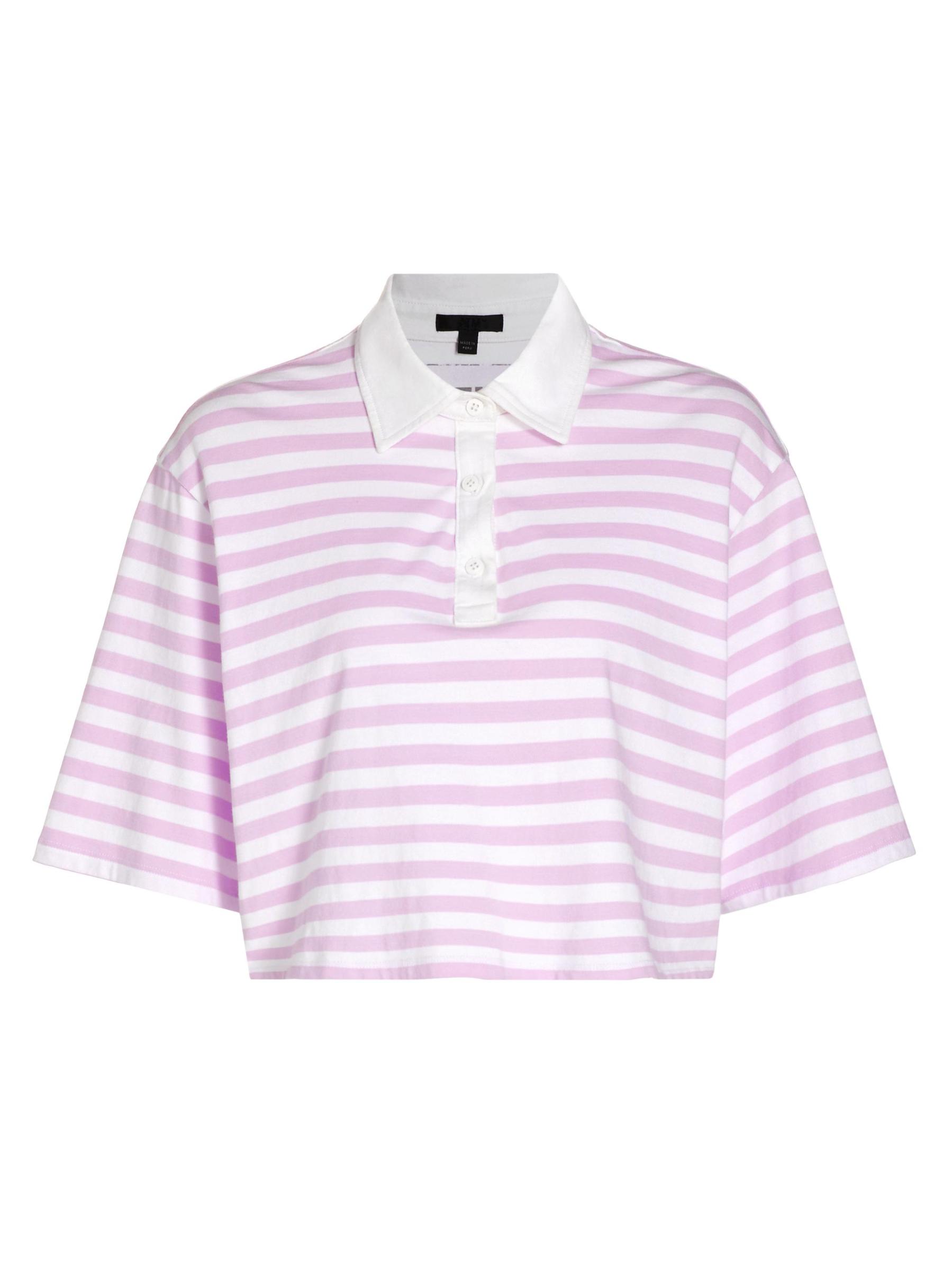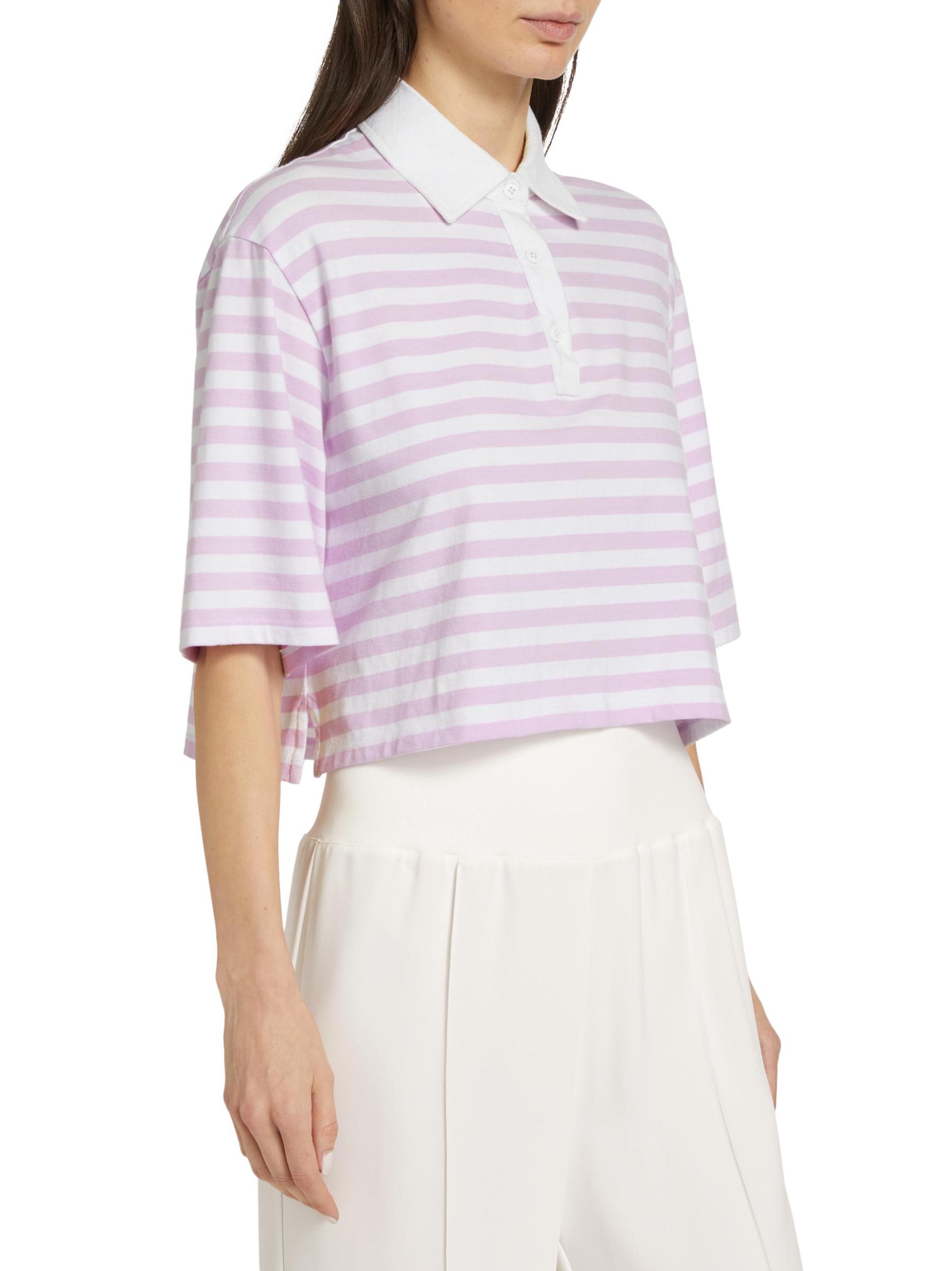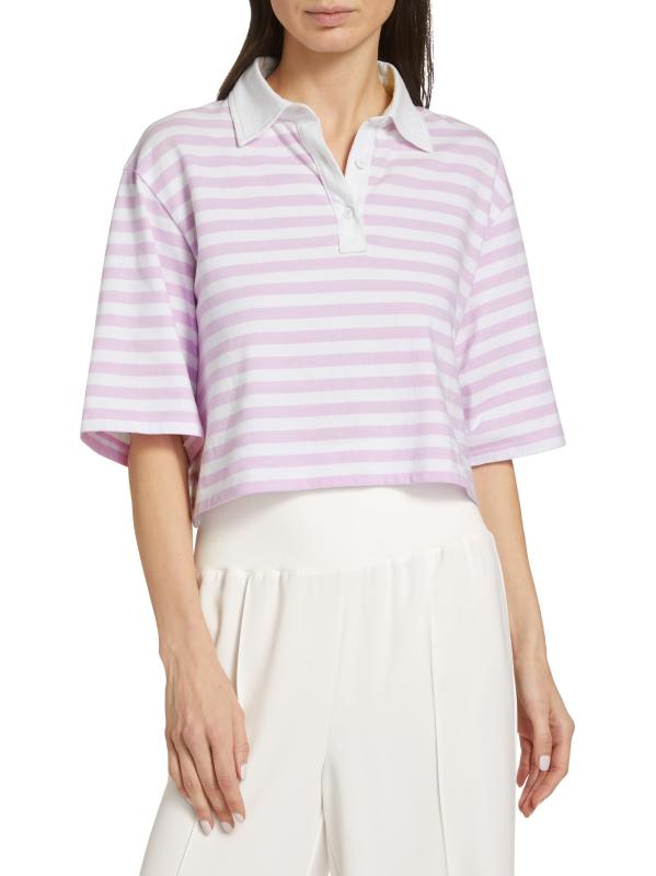 تتميّز بلوزة بولو القصيرة والمصنوعة من ATM Anthony Thomas Melilo بياقة متباينة وفتحة بثلاثة أزرار. تتميز هذه القطعة بنمط مخطط مذهل على ظهر قطني ناعم.