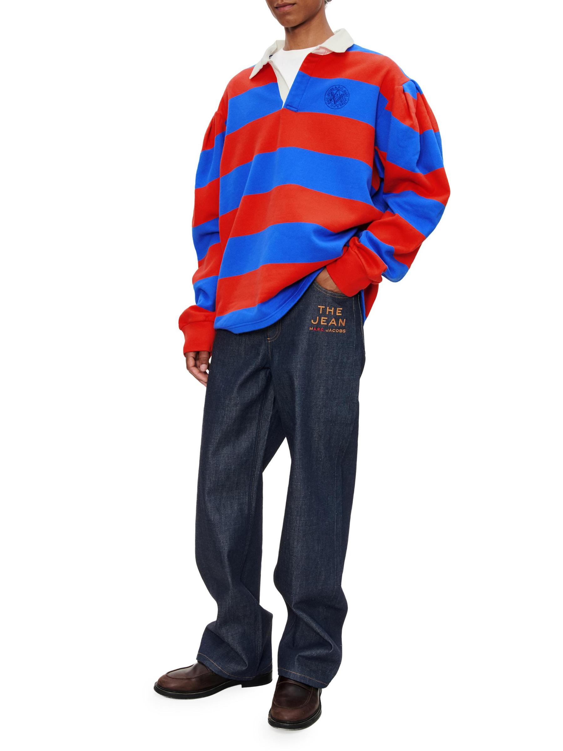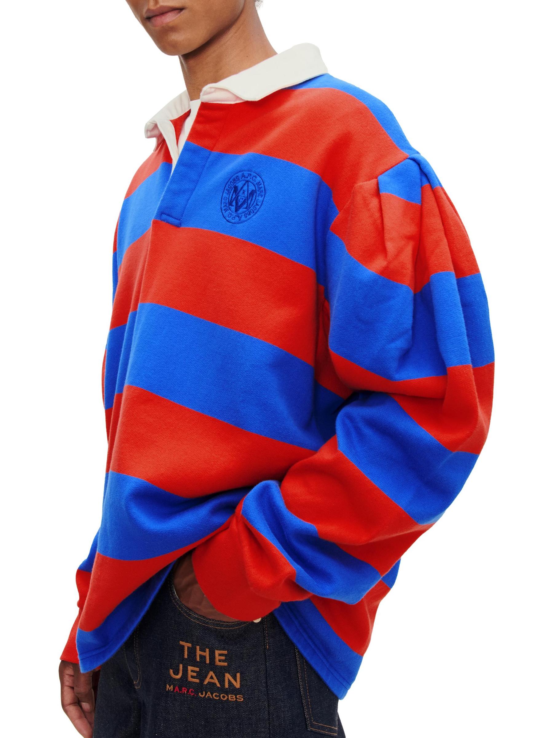 تم تزيين قميص بولو Marc Jacobs x A.P.C. بنمط مخطط عريض. تتميز هذه القطعة ذات الأكمام الطويلة بياقة مفتوحة متباينة وشعار شعار العلامة التجارية المشتركة مطرّز على الجانب الأيسر من الصدر.