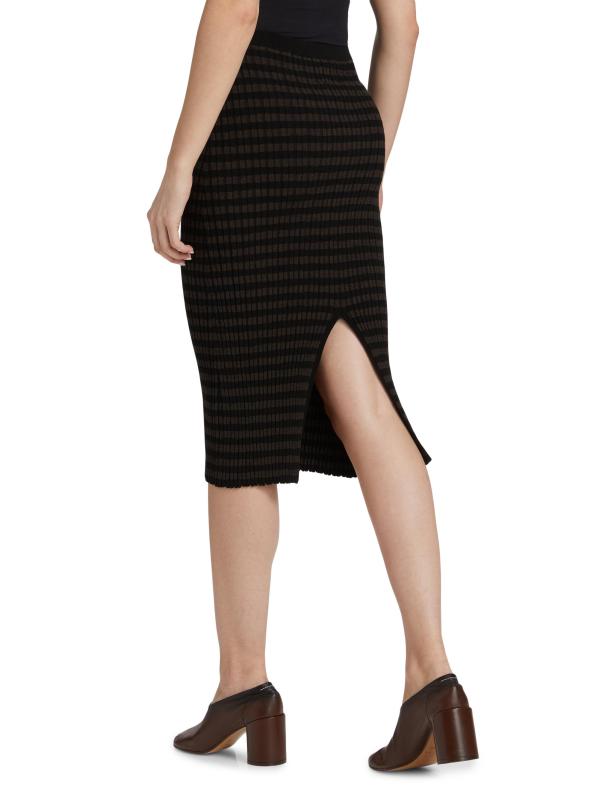 تتميز هذه التنورة المتوسطة المخططة المصنوعة في إيطاليا من MM6 Maison Margiela بتصميم قلم رصاص مع شق خلفي.