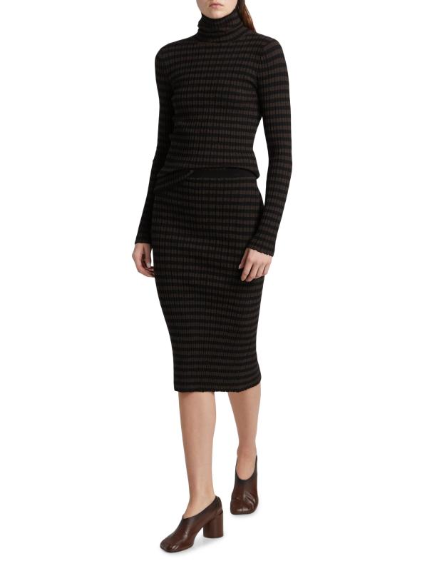 تتميز هذه التنورة المتوسطة المخططة المصنوعة في إيطاليا من MM6 Maison Margiela بتصميم قلم رصاص مع شق خلفي.خصر مطوق سهل الارتداء 70% فيسكوز رايون/ 30% بوليستر تنظيف جاف صُنع في إيطاليا