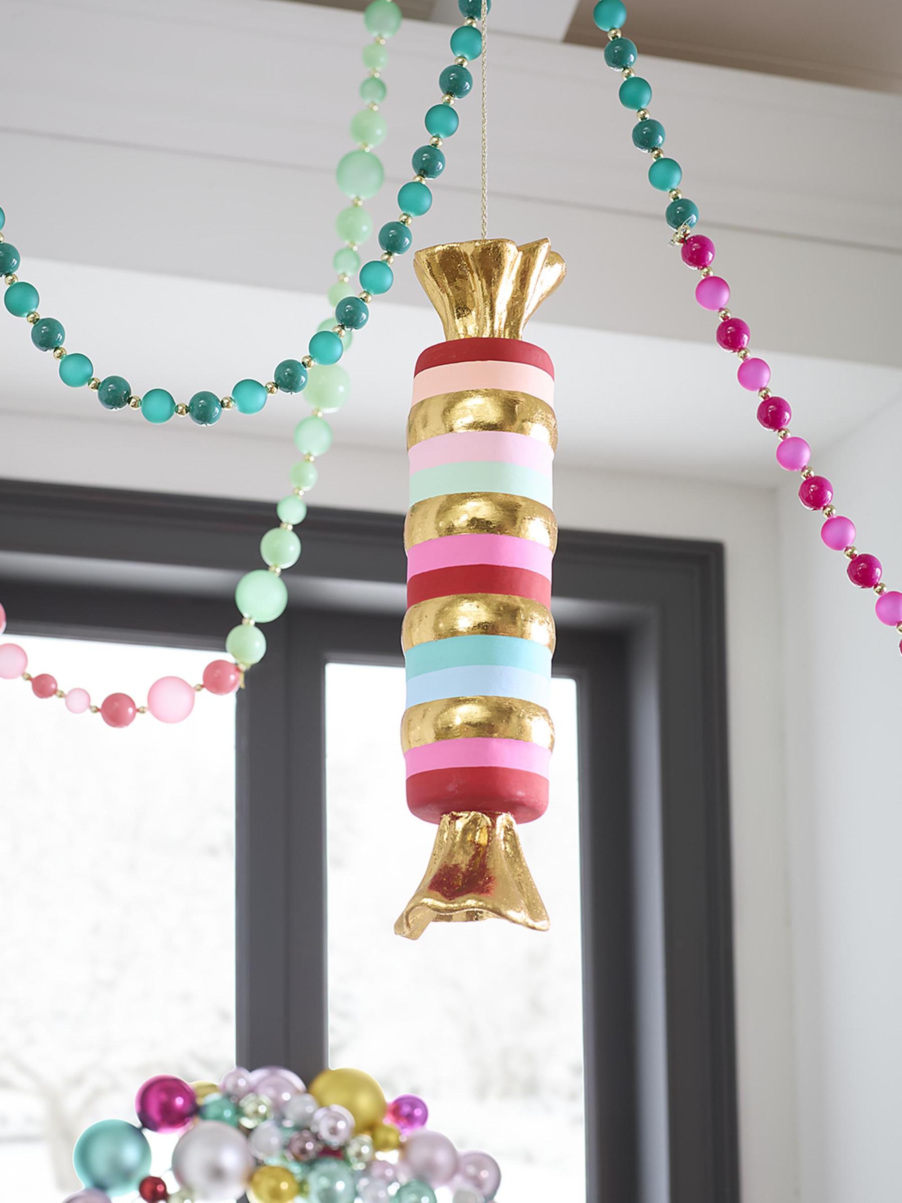 تتميز هذه الشاشة المعلقة المخططة من Glitterville بنمط مرسوم يدويًا مع لمسات من الأوراق الذهبية.