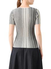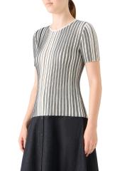 سترة Akris punto ذات الأكمام القصيرة محبوكة من الصوف البكر بتصميم أضلاع نسيجي.رقبة مستديرة أكمام قصيرة تسحب صوف بكر 100% تنظيف جاف مستوردة