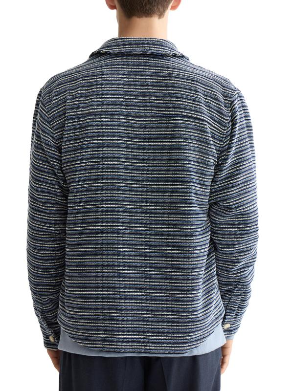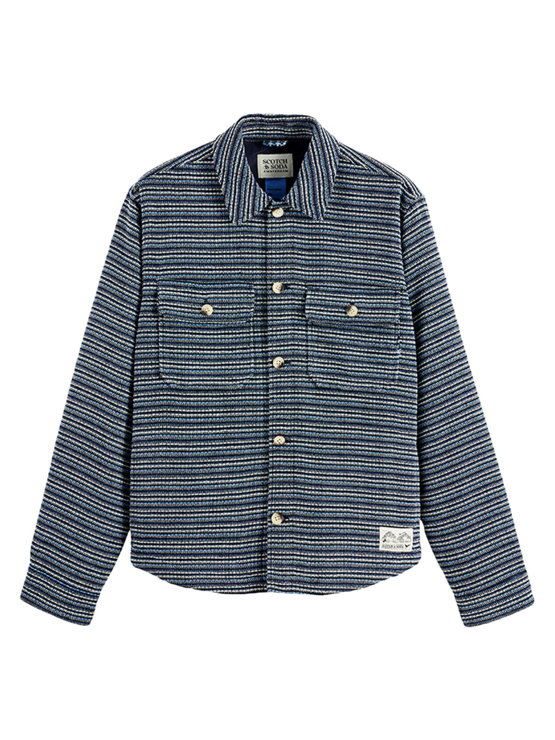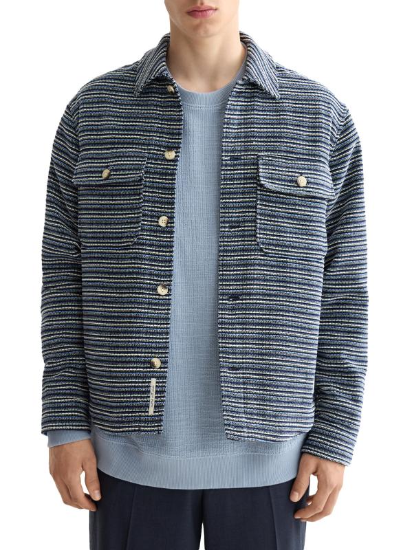 Soda بين نسيج مخطط منسوج مميز وتصميم مستوحى من ملابس العمل. جيوب على الصدر تُكمل المظهر.