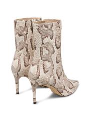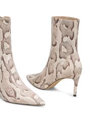 تتميّز جوارب Stuart من Stuart Weitzman، المصنوعة من الجلد الغريب المنقوش على شكل ثعبان، بمقدمة مدببة حادة وكعب خنجر.