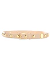 هذا الحزام من Aureum Collective مصنوع من الجلد ويتميز بأزرار معدنية ذهبية اللون.
